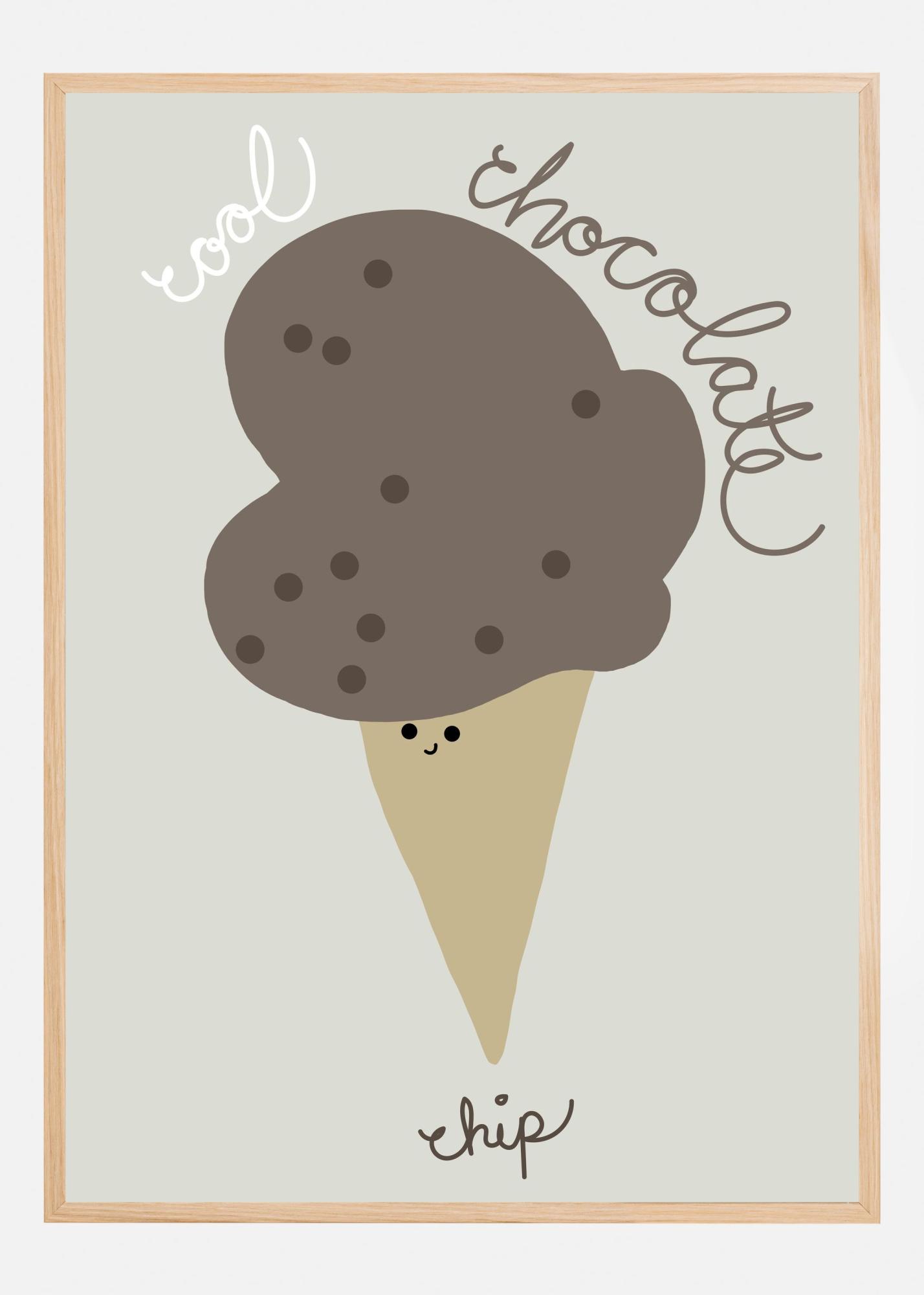 Ge din vägg ett härligt och lättsamt inslag med denna charmiga affisch som framställer en illustration av en glass i dämpade färger. Motivet avbildar en ljuvlig chokladglass, komplett med klickar av "cool chip" och är en söt hyllning till älskade desserter och sommarkänslor. Printens jordnära färgpalett går i toner av brun, beige och grå, och lägger till en modern men samtidigt avslappnad touche till ditt hem eller kontor.