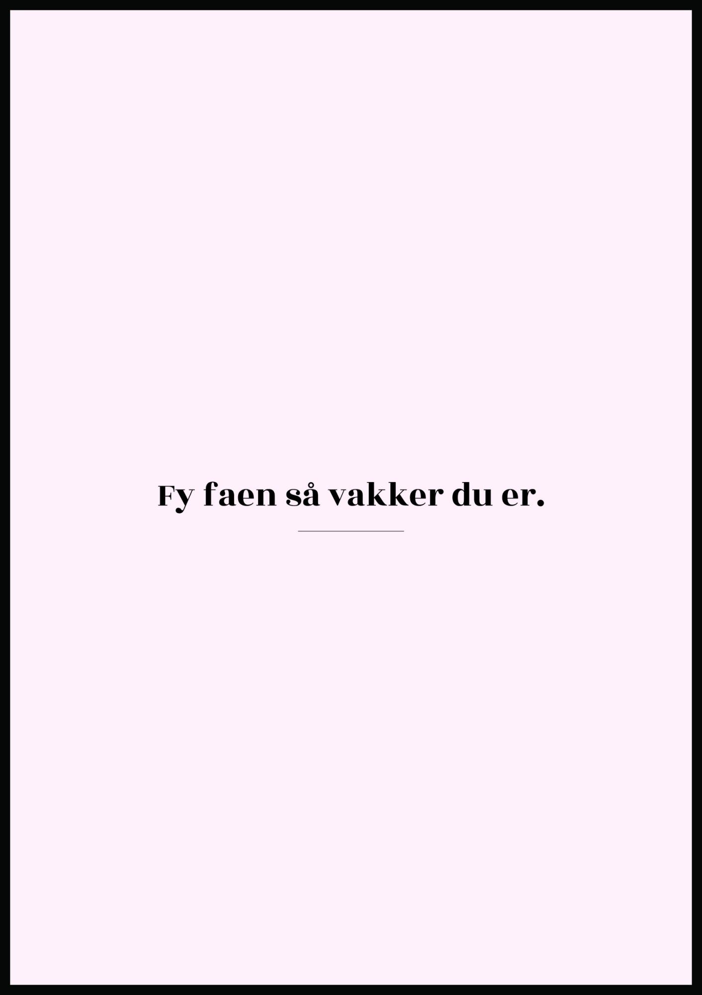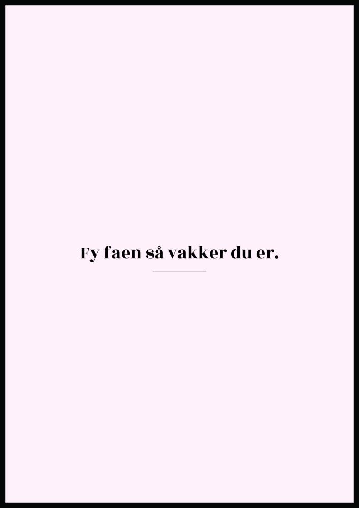 Citat - Skam - Vakker - Rosa Poster (13x18 cm)