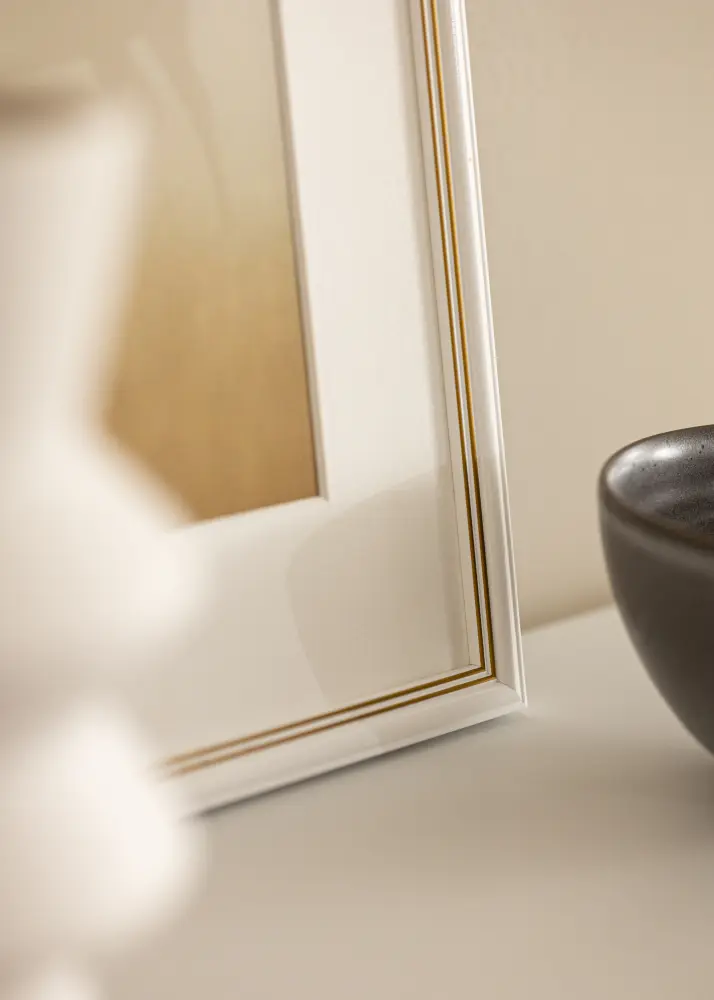 Om du letar efter en elegant och stilig fotoram till ett bra pris är "Classic Vit" vad du letar efter. Ramen har en vit rundad profil som är dekorerad med två tunna guldfärgade linjer närmast motivet. Perfekt till exempelvis porträttbilder eller vackra naturbilder.
