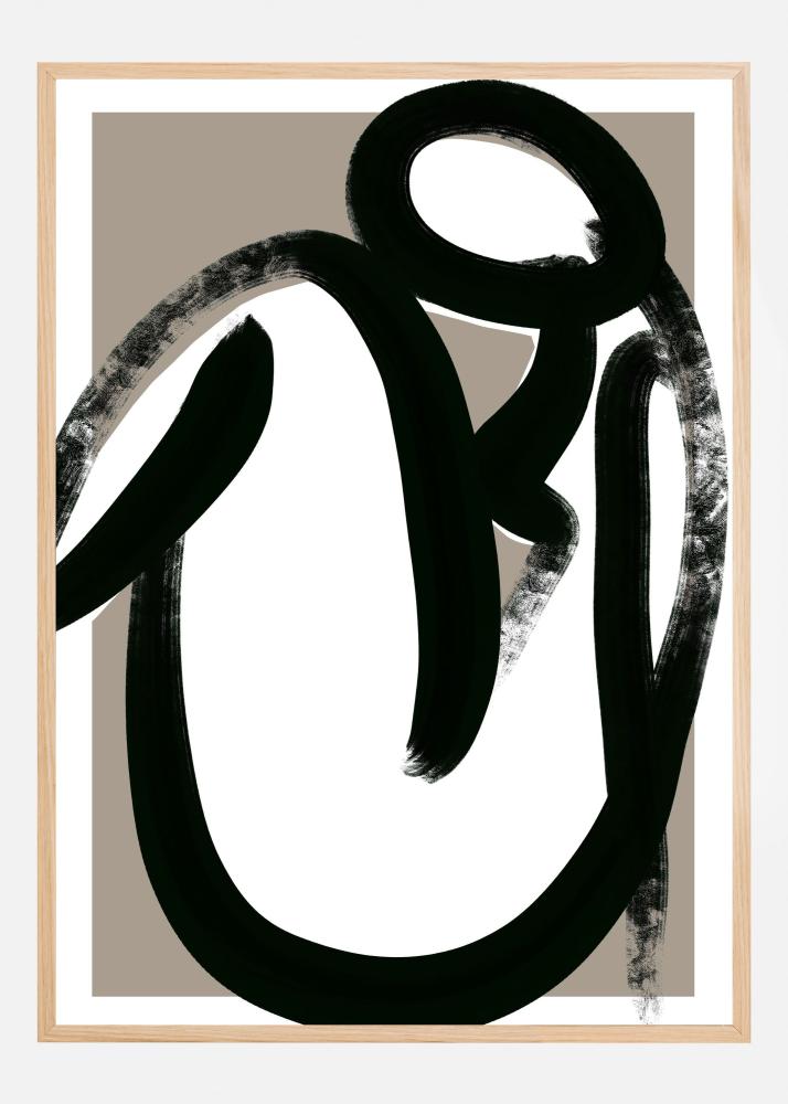 Denna samtida poster föreställer en abstrakt komposition som balanserar mörka och ljusa element på ett konstfullt sätt. Det kraftfulla, svarta motivet som dominerar bilden är svängt och expressivt, vilket ger en känsla av rörelse och energi. Bakgrunden i en sober taupefärg skapar en elegant och diskret kontrast till det svarta, vilket gör att denna print kan komplettera en mångfald av inredningsstilar.