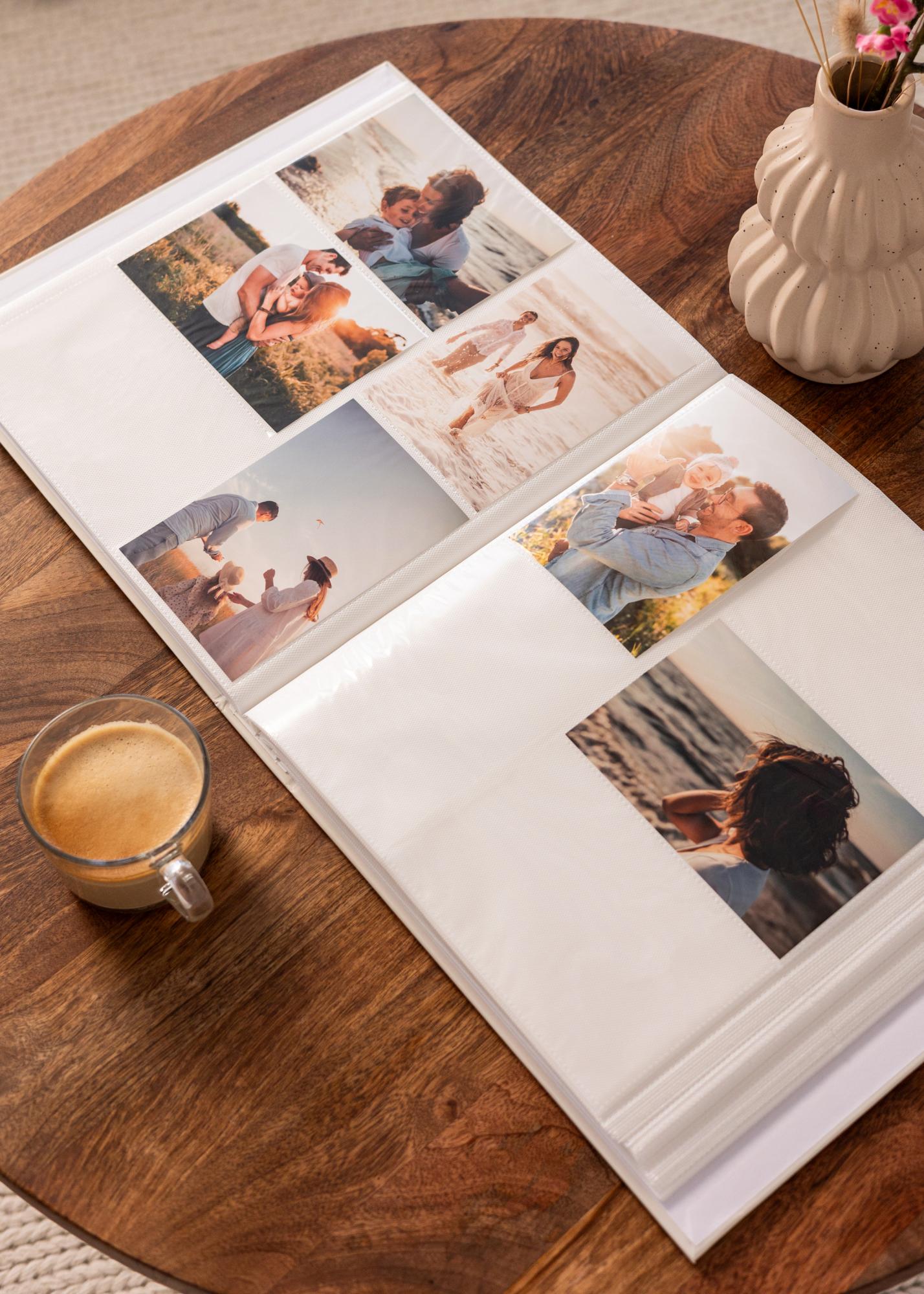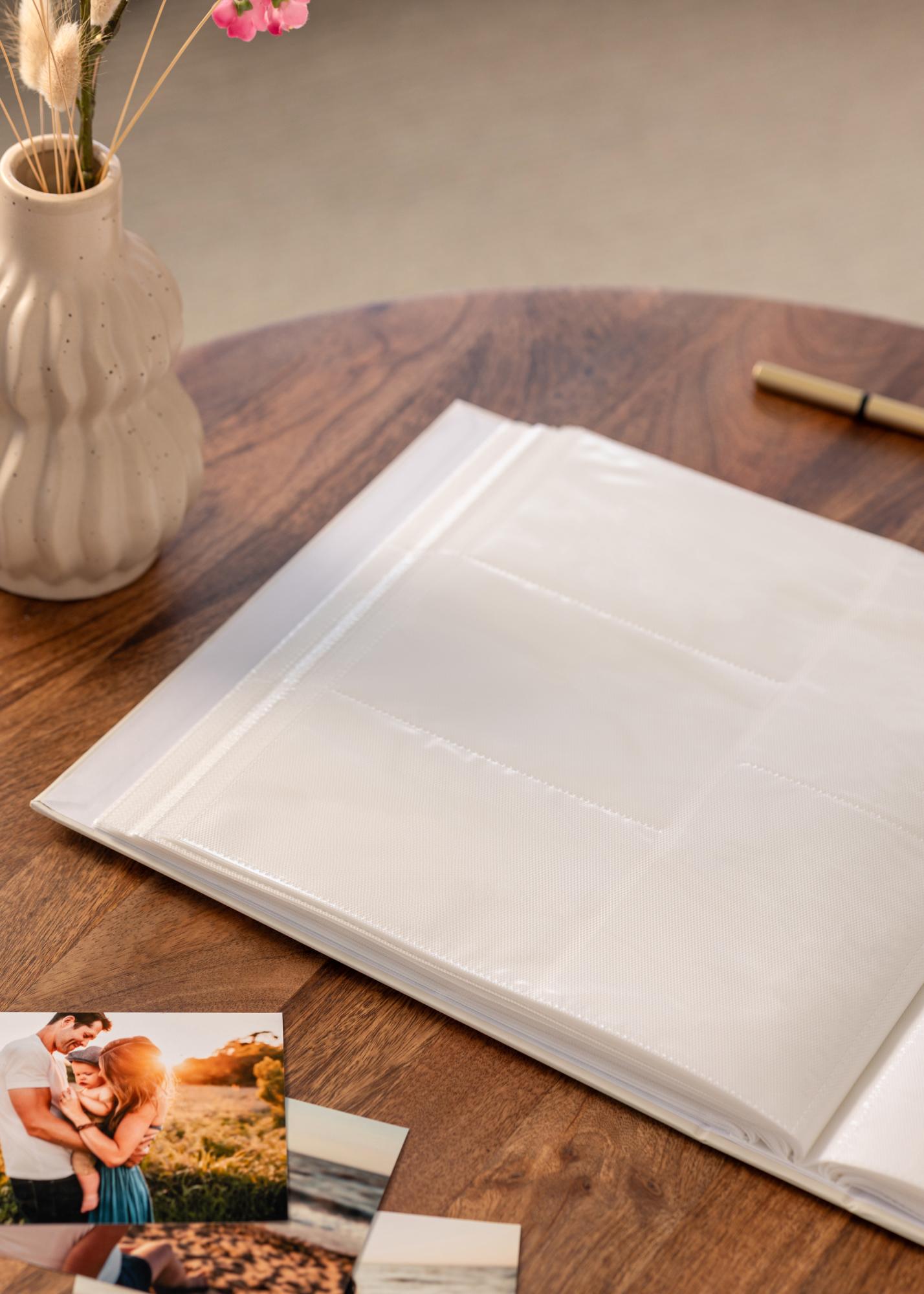 Albumets pärmar är i en sofistikerad grå nyans som ger ett tidlöst och modernt intryck. De vita sidorna skapar en vacker kontrast och framhäver dina bilder på bästa sätt. Varje sida är utrustad med praktiska fotofickor, vilket gör det enkelt att montera och byta ut bilder utan krångel.