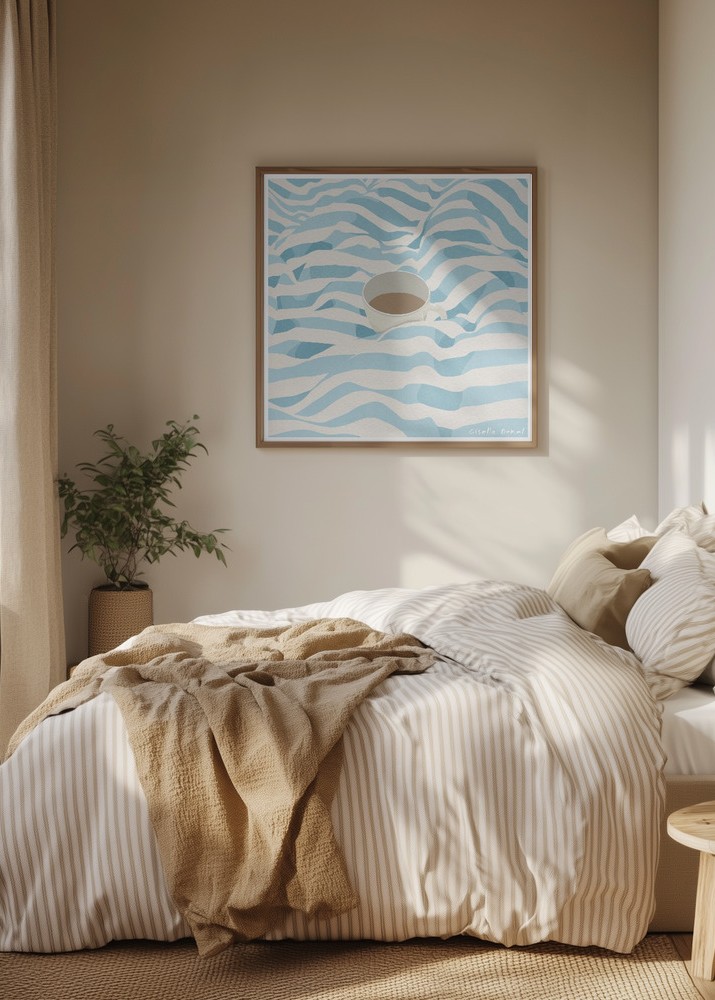 Upptäck den harmoniska känslan i denna poster med en minimalistisk design som fångar en fridfull stund. Motivet visar en kopp kaffe som vilar bland böljande ränder. Den enkla men effektfulla stilen gör denna print till ett perfekt tillskott för både moderna och klassiska inredningar.