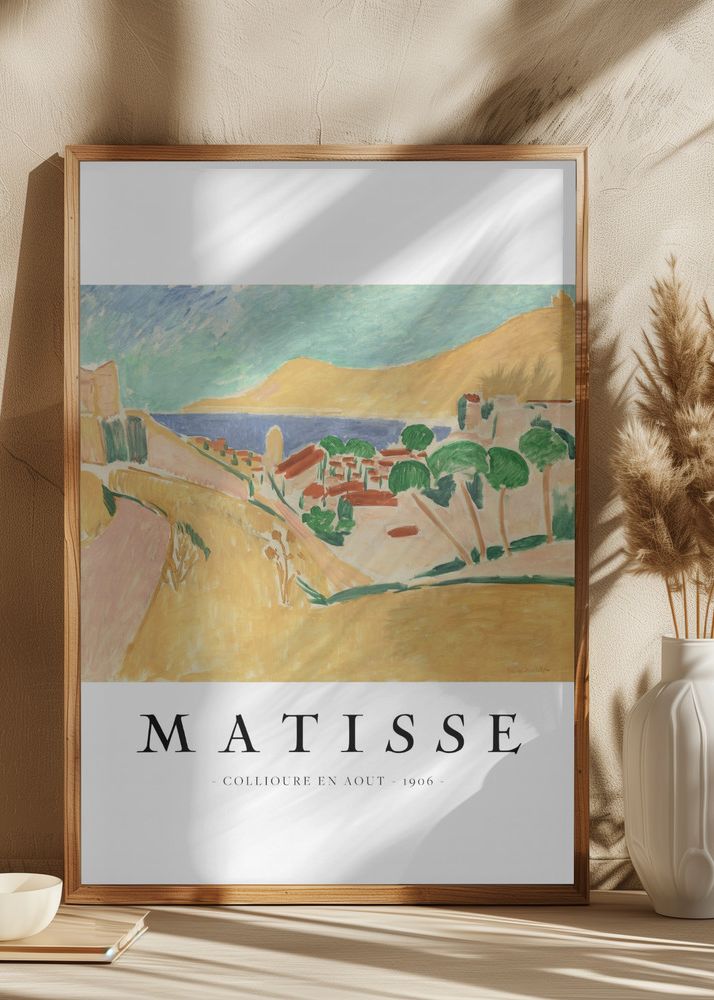 Denna vibranta poster föreställer ett landskap i livliga färger som blått, grönt, rosa, gult och orange. Motivet är inspirerat av det pittoreska Collioure, med en vy som fångar både hav och land. Den färgstarka paletten ger en känsla av sommar och frihet, och gör affischen perfekt för att liva upp vilket rum som helst i hemmet.