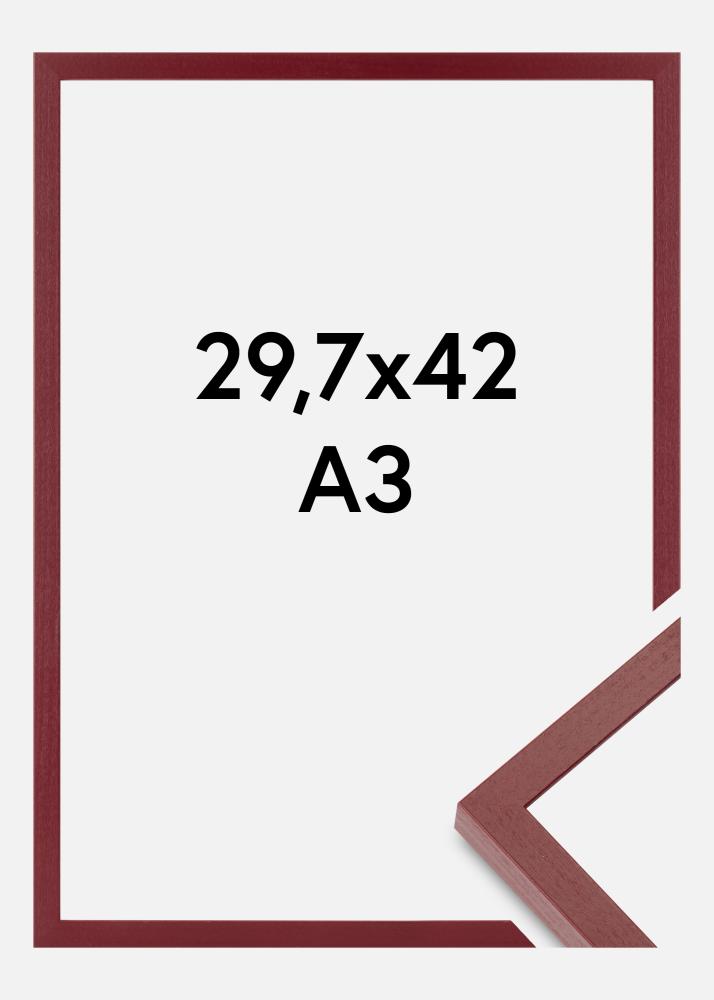 Ge dina väggar en färgstark touch med denna iögonfallande röda fotoram i storleken 29,7x42 cm (A3). Den smala och eleganta ramlisten, som är 13,5 mm bred, ramar in ditt konstverk eller foto utan att ta överhanden. Med sin djup på 22,5 mm skapar tavelramen en fin tredimensionell effekt på din vägg.