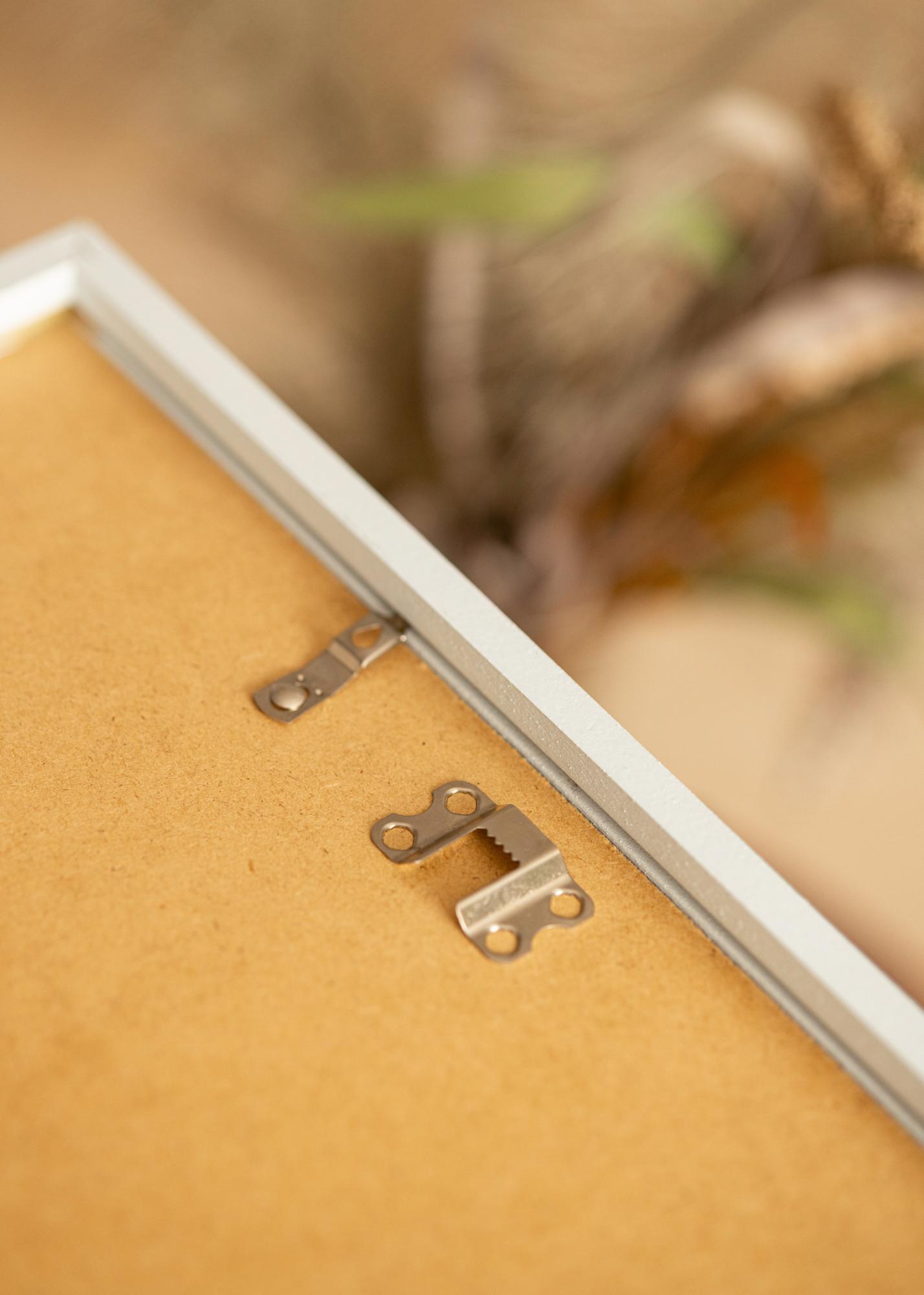 Denna tavelram är inte bara en fröjd för ögat utan också praktisk. Med en ramlist som mäter 13,5 mm i bredd och ett djup på 22,5 mm, skapar den en elegant inramning av ditt fotografi eller konstverk. Dessutom är ramen utrustad med metallhängare på baksidan, vilket gör det enkelt att hänga upp den antingen horisontellt eller vertikalt efter eget önskemål.