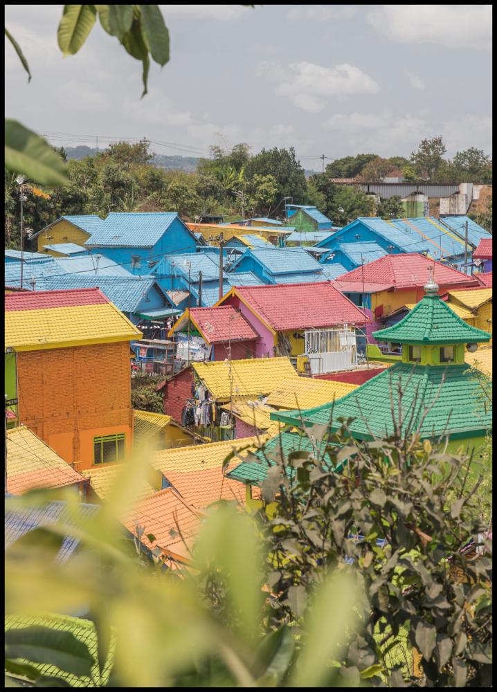 En livfull fotografisk poster över en liten bohemisk by omgiven av lummig grönska. En tavla som bidrar med en härligt upplyftande färgklick. Komplettera gärna med något ur vårt stora sortiment av ramar.