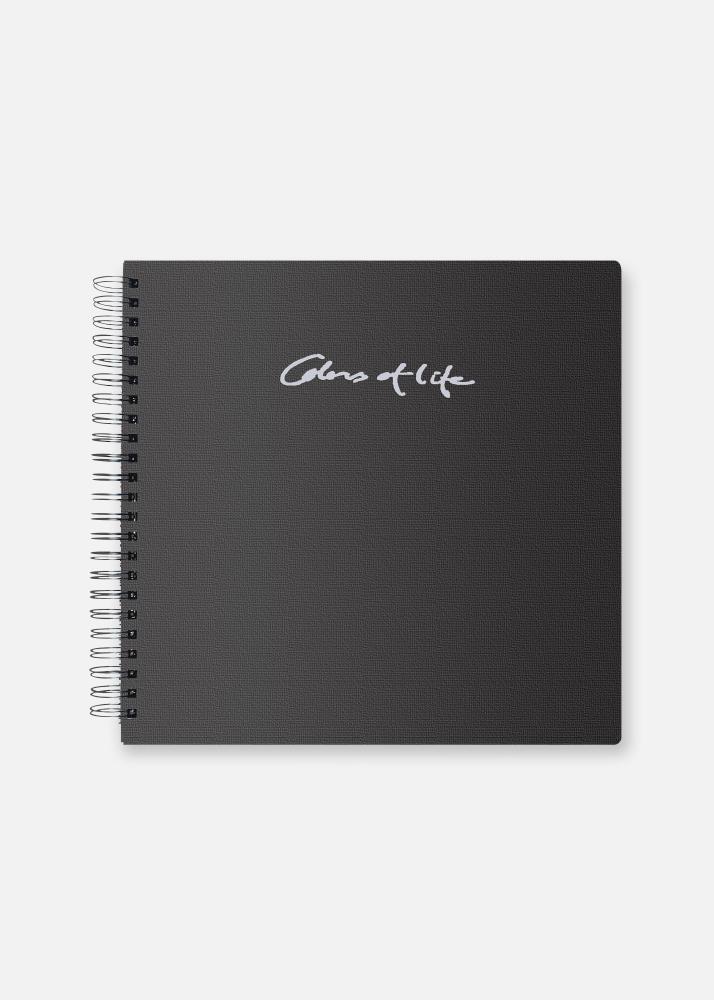 Ett spiralalbum på 30x30 cm med 24 syrafria svarta blad, redo att fyllas med minnen! På albumets framsida står texten "Colors of life" i silver.