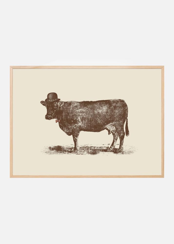 Trendig och artistisk, denna unika poster föreställer en ko klädd i en stilfull hatt, avbildad i en detaljerad och vintage inspirerad stil. Perfekt för att addera en lekfull och intressant touch i varje rum, den här printen kombinerar humor med klassisk illustreraste konst. Dominerande färger i detta motiv inkluderar jordnära bruna nyanser samt svart, mot en varm beige bakgrund som skapar en mysig känsla.