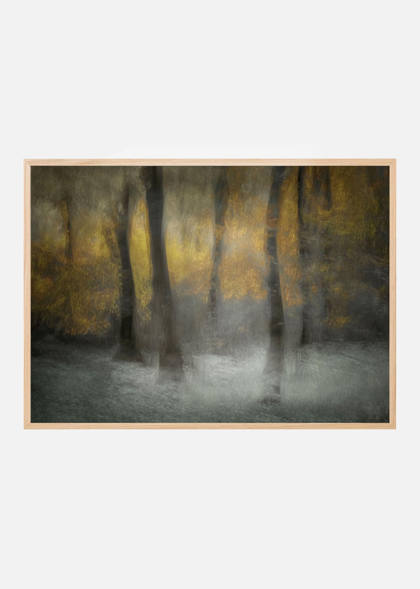 Denna poster fångar en magisk och drömsk skogsstämning där träden reser sig mot en dimmig bakgrund. Bilden ger en känsla av ro och mystik, vilket gör den perfekt som dekoration i såväl vardagsrum som sovrum. För dem som söker en affisch som kombinerar naturens skönhet med konstnärlig känsla, erbjuder detta motiv en subtil och elegant touch till alla rum.