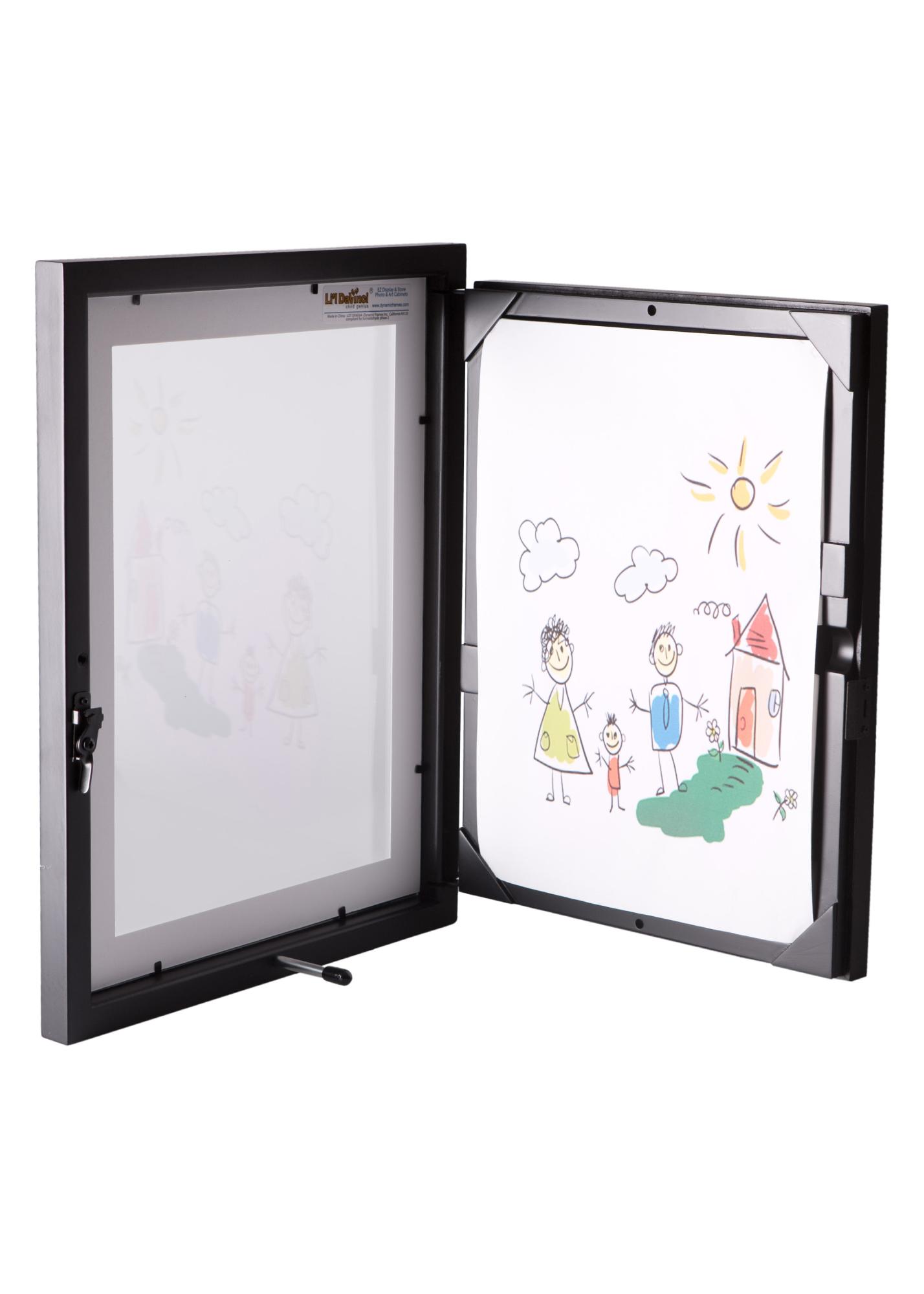 Enkel och smidig teckningsram i storlek A4. Perfekt för barnens alla teckningar. Byt enkelt ut teckningarna i ramen allteftersom nya konstverk tillverkas. Ramen öppnas enkelt från sidan. Da Vinci teckningsram är en svart och stilren ram och passar överallt i hemmet. Den tar varsamt hand om barnens teckningar så att dom sparas i tryggt förvar. Varför inte låta barnet stoltsera med att få sina bilder inramade och uppsatta på väggen i sitt rum? Perfekt present på födelsedagen eller julafton, som uppskattas av både stora och små. Låt teckningarna, fotografier eller diplom få en praktisk, enkel ram och bli en del av inredningen.