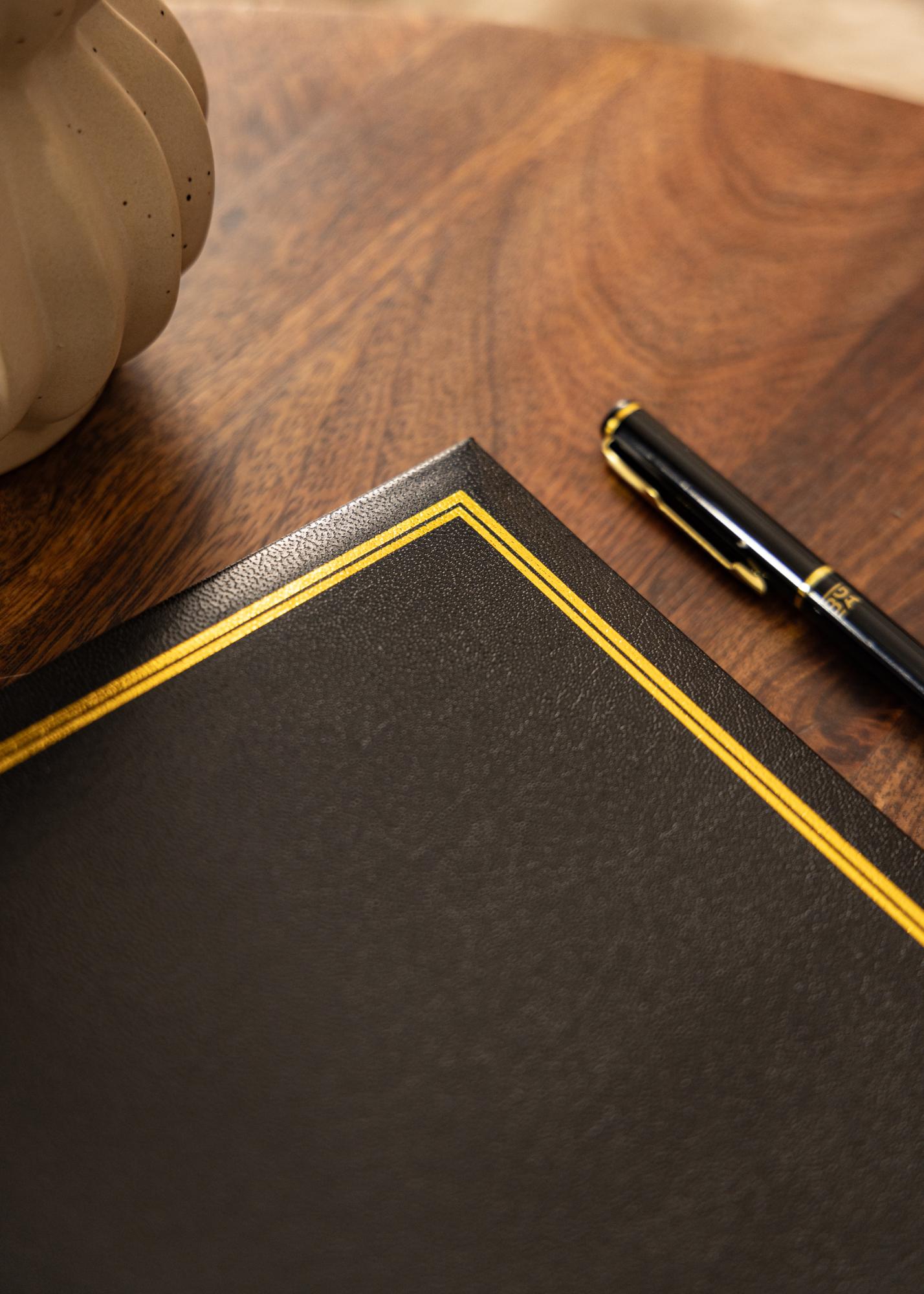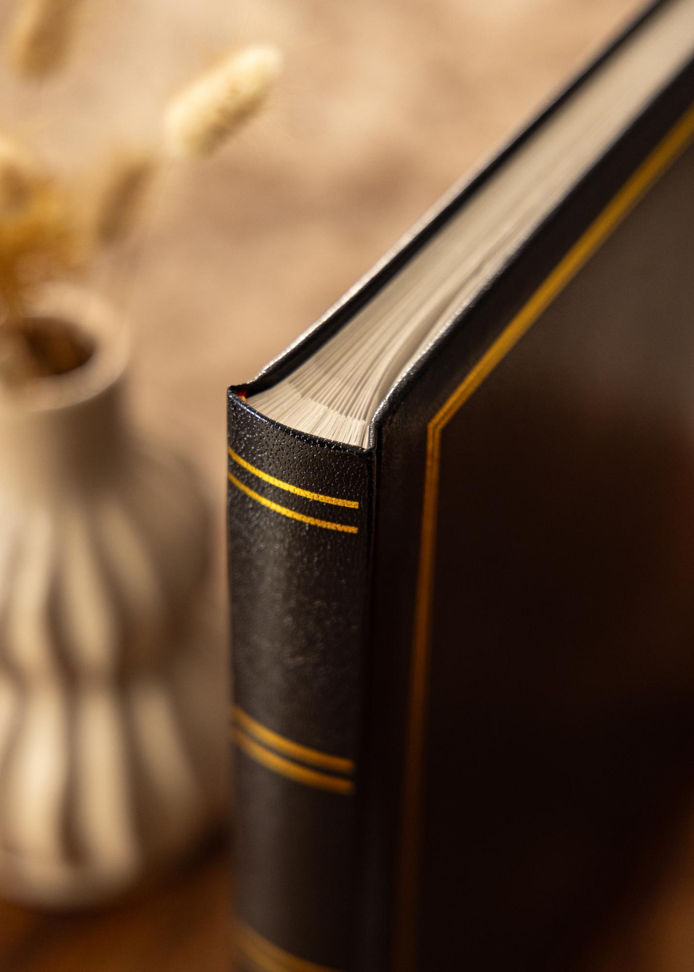 Söker du ett klassiskt fotoalbum i ett praktiskt utförande? Då passar den här svarta modellen med snygga guldlinjer och självhäftande sidor perfekt! De syrafria sidorna är mycket enkla att fylla med dina bästa minnen och givetvis tillåter klistret att du flyttar om dem i efterhand.