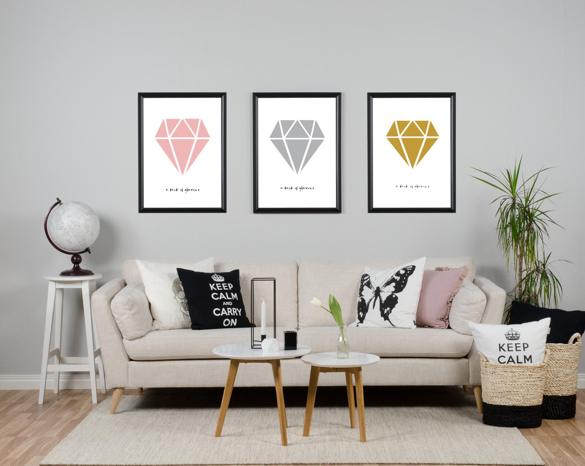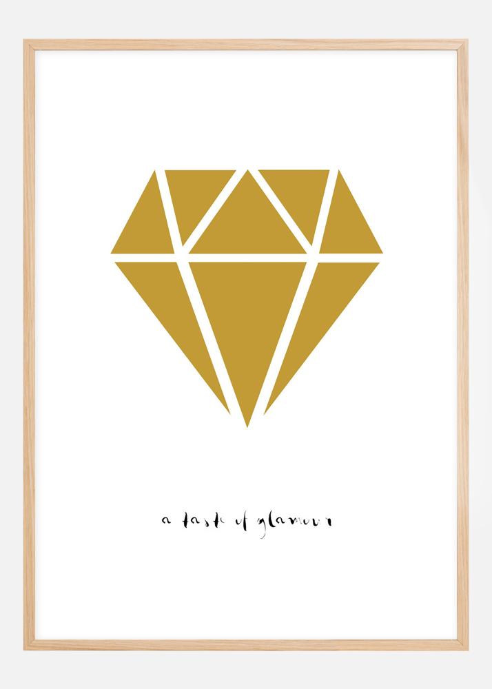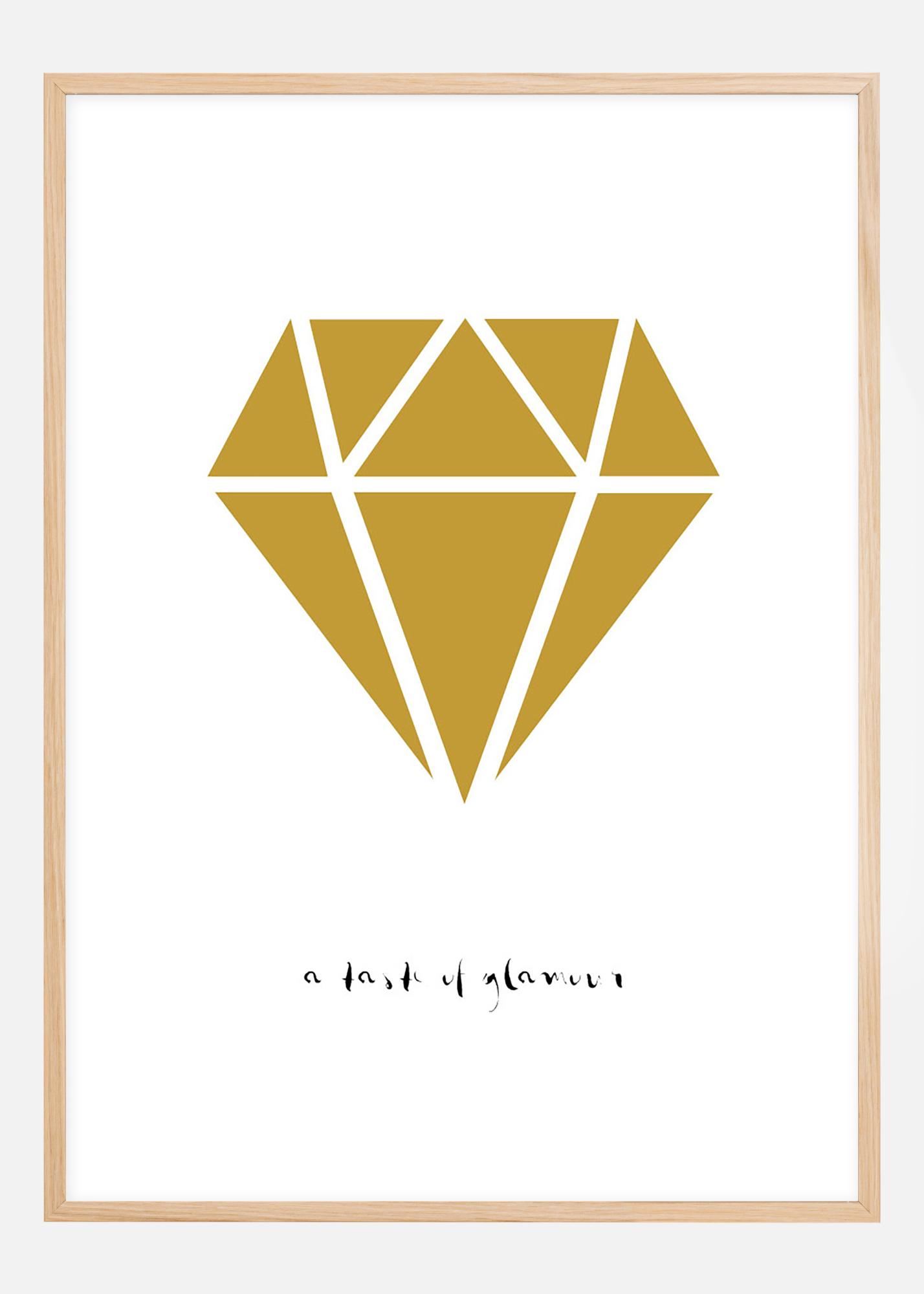 Diamonds are a girl's best friend, fast här i mer överkomlig form av ett grafiskt tryck. Ge hemmet en känsla av lyx och flärd med en snygg affisch som har motivet av en diamant i guld på vit bakgrund, med texten "a taste of glamour". Alla behöver lite glamour ibland och det här är ett enkelt sätt att skapa lite mer av det i tillvaron.