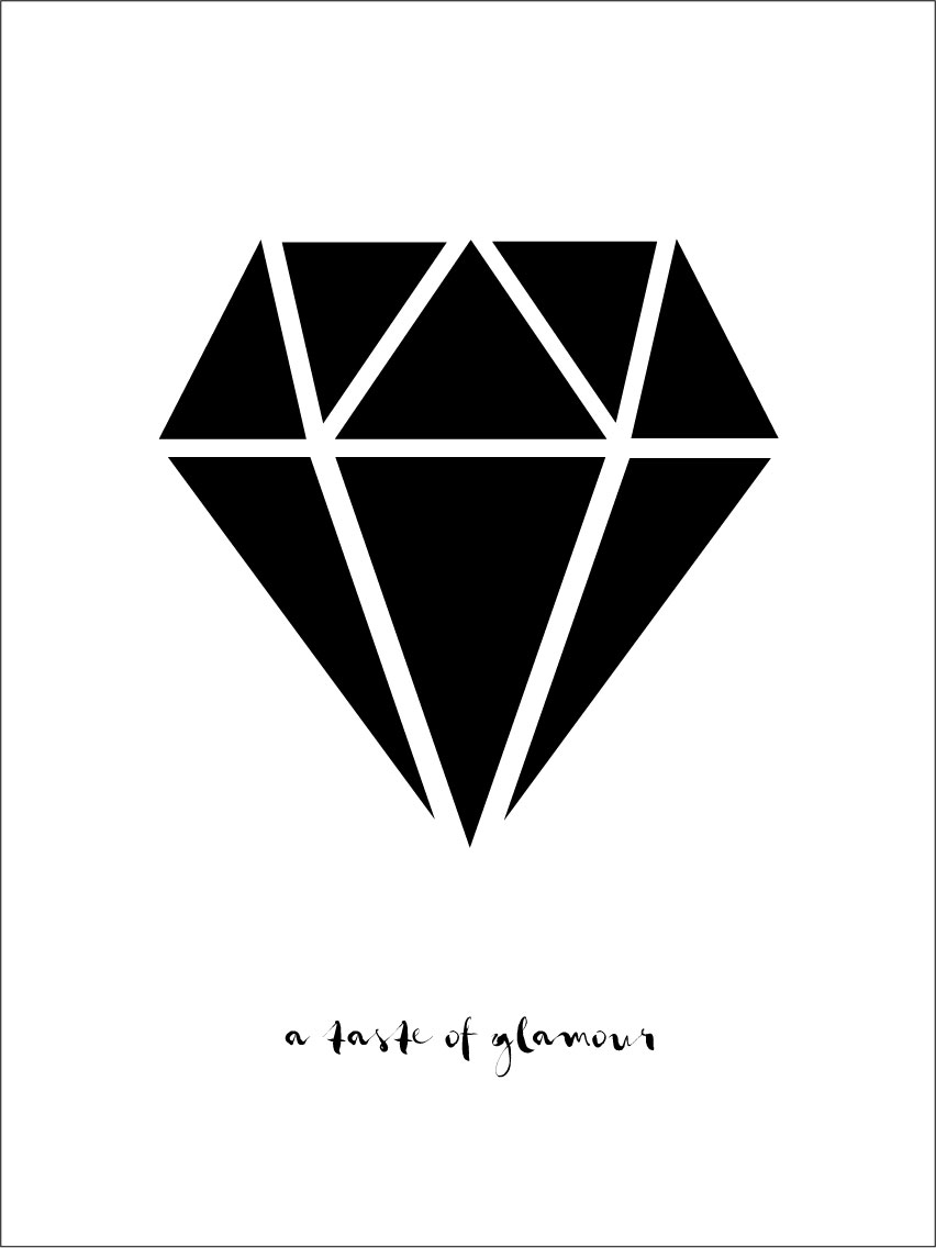 Diamonds are a girl's best friend, fast här i mer överkomlig form av ett grafiskt tryck. Ge hemmet en känsla av lyx och flärd med en snygg affisch som har motivet av en diamant i svart på vit bakgrund, med texten "a taste of glamour". Alla behöver lite glamour ibland och det här är ett enkelt sätt att skapa lite mer av det i tillvaron.