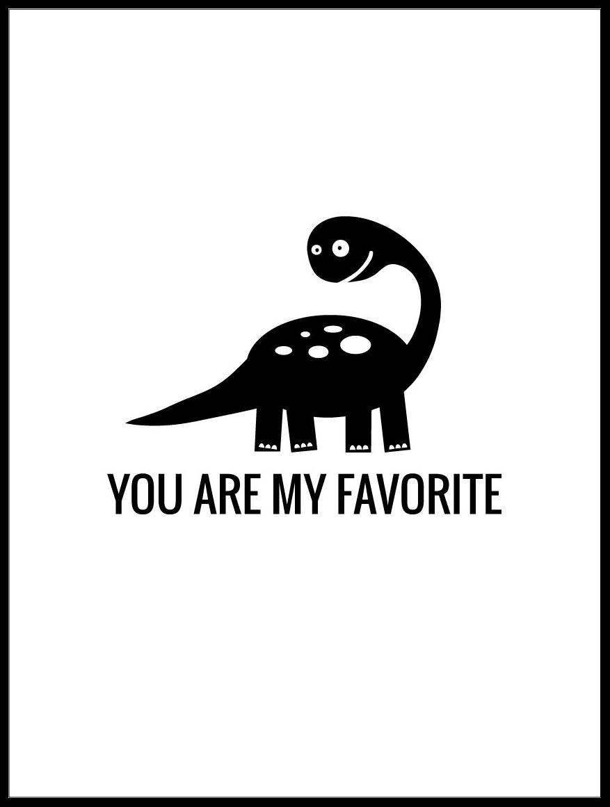 Gulligt print med en söt dinosaurie att ge till sin absoluta favorit här i världen. Inred barnrummet med ett grafiskt blad som får barnet att känna sig älskat, speciellt framtaget för alla dinofantaster. Det svarta stilrena typsnittet gör att affischen passar in oavsett vilken färg och stil rummet är inrett i. Passar bra att kombinera med Elefant Dream, Kanin Happy, Hund Little, Superhero eller Pingvin Cool.