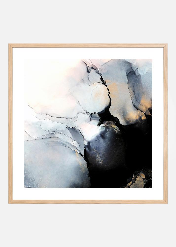En härligt abstrakt konst poster i akvarell, i nyanser av svart, blått och guld med diffusla inslag av rosa, skapad av konstnär Gabriella Roberg. En poster bland annat gör sig utmärkt tillsammans med Gabriellas konstverk DAWN.