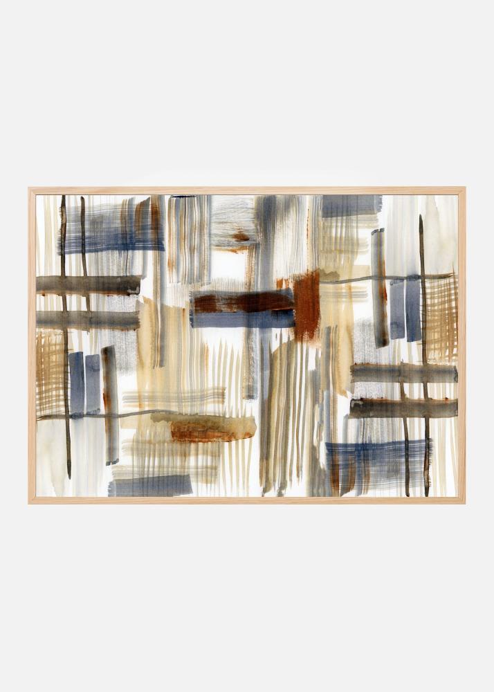 Utforska en modern och abstrakt poster som kombinerar en fascinerande blandning av färger och former för att fånga din uppmärksamhet. Denna print präglas av en konstnärlig lek med horisontella och vertikala linjer som samspelar i en dynamisk komposition. Linjer i djupt blått, jordigt brunt, och varma beige toner förenas för att skapa en harmonisk och balanserad känsla. Denna affisch är perfekt för att ge en stilfull prägel till alla rum och erbjuder en kreativ touch med sina distinkta mönster.