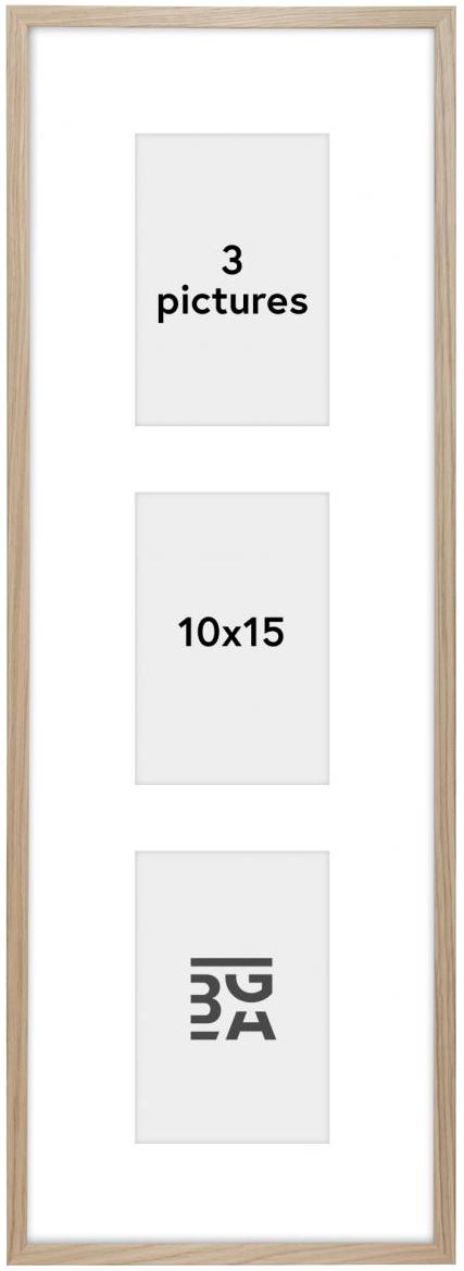 Edsbyn är en stilren collageram tillverkad i trä, med äkta floatglas som har 45% UV-skydd. Den minimalistiska designen sätter motivet i fokus, för att dina favoritbilder ska hamna i blickfånget. Ramen finns i flera utföranden, varav denna är en variant i ek med plats för 3 bilder i storlek 10x15 cm.