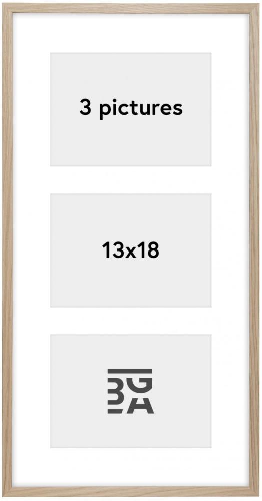 Edsbyn är en stilren collageram tillverkad i trä. Den minimalistiska designen sätter motivet i fokus, för att dina favoritbilder ska hamna i blickfånget. Ramen finns i flera utföranden, varav denna är en variant i ek med plats för 3 bilder i storlek 13x18 cm.