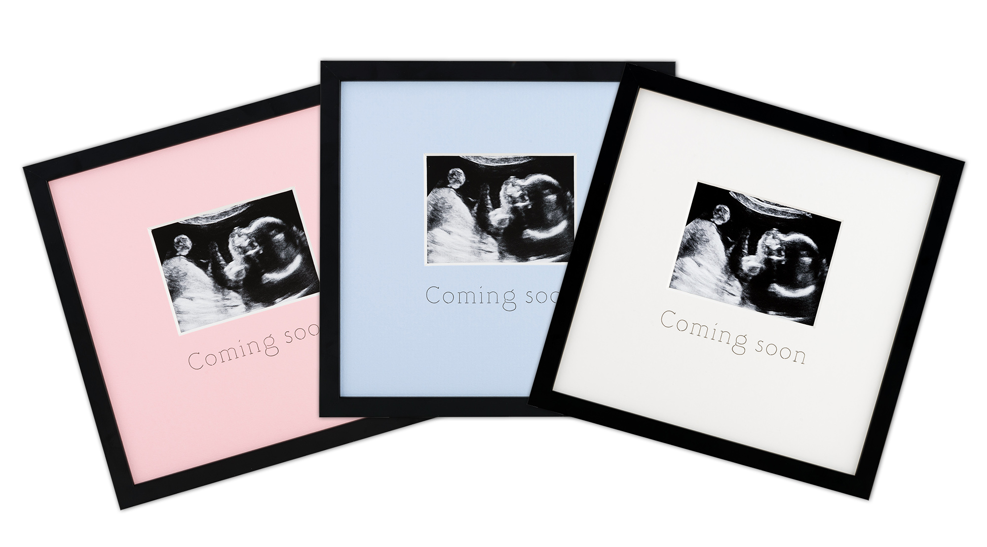 Fin fotoram med passepartout för ultraljudsbild. En söt tavla till barnrummet, eller använd den som ett charmigt och roligt sätt att berätta för nära och kära att en liten bebis är på väg! Välj mellan flera olika färger.