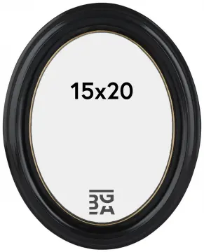 Eiri Mozart är en fin svart oval fotoram tillverkad i Finland vilket borgar för mycket hög kvalitet. Förutom en tunn guldkant närmast motivet är ramen helt i svart.
