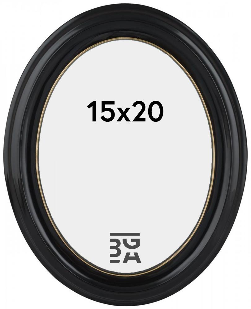 Starta ramväljaren »Eiri Mozart är en fin svart oval fotoram tillverkad i Finland vilket borgar för mycket hög kvalitet. Förutom en tunn guldkant närmast motivet är ramen helt i svart.