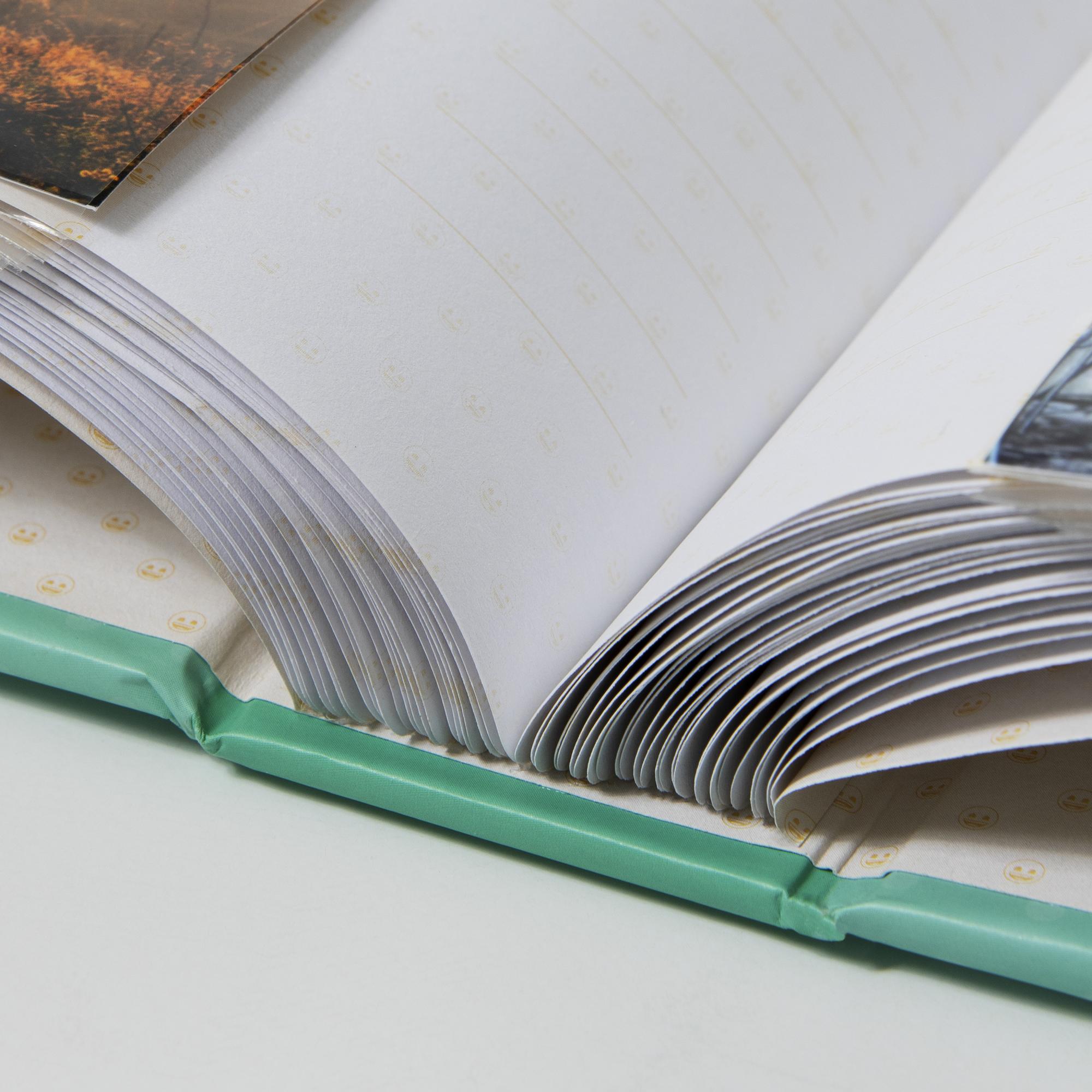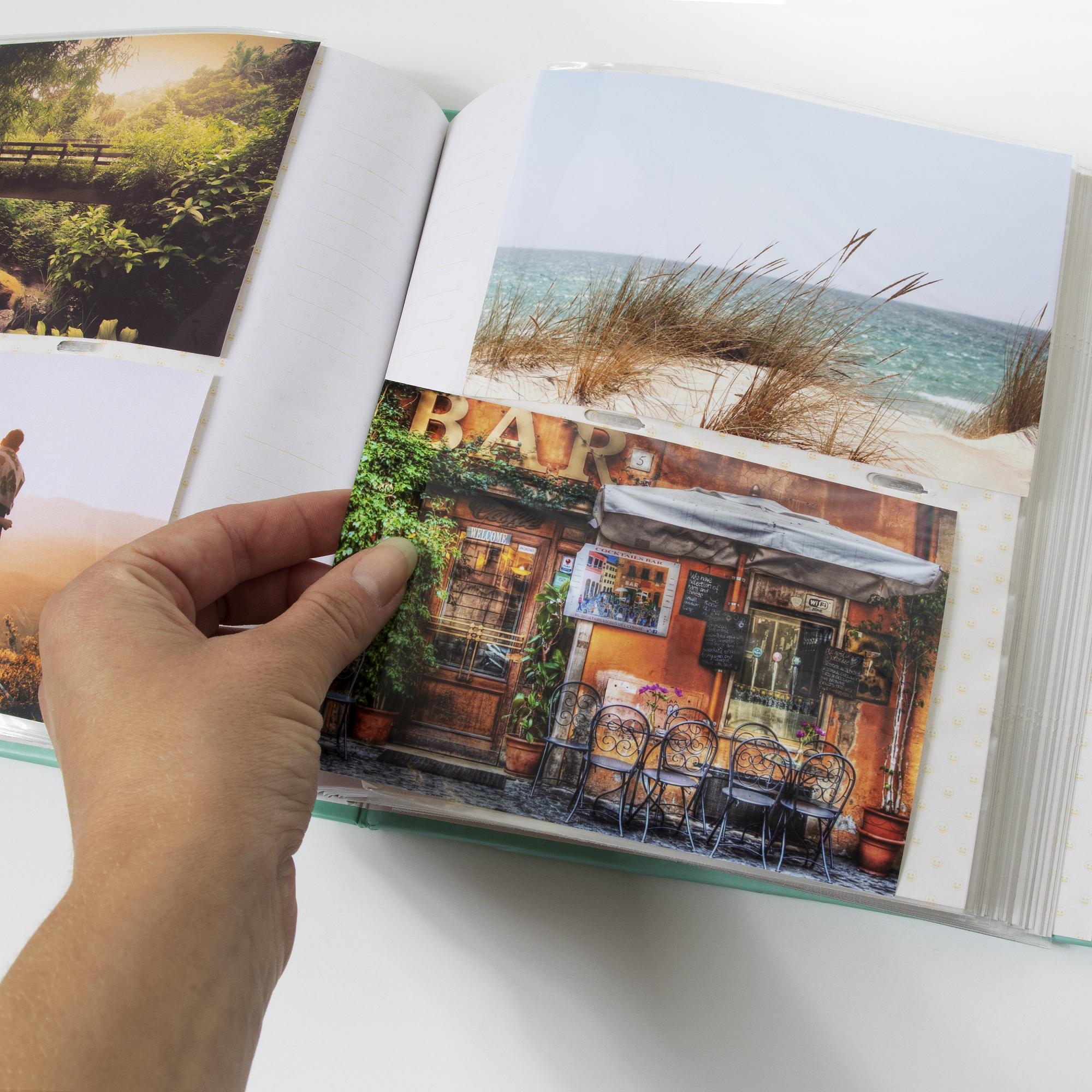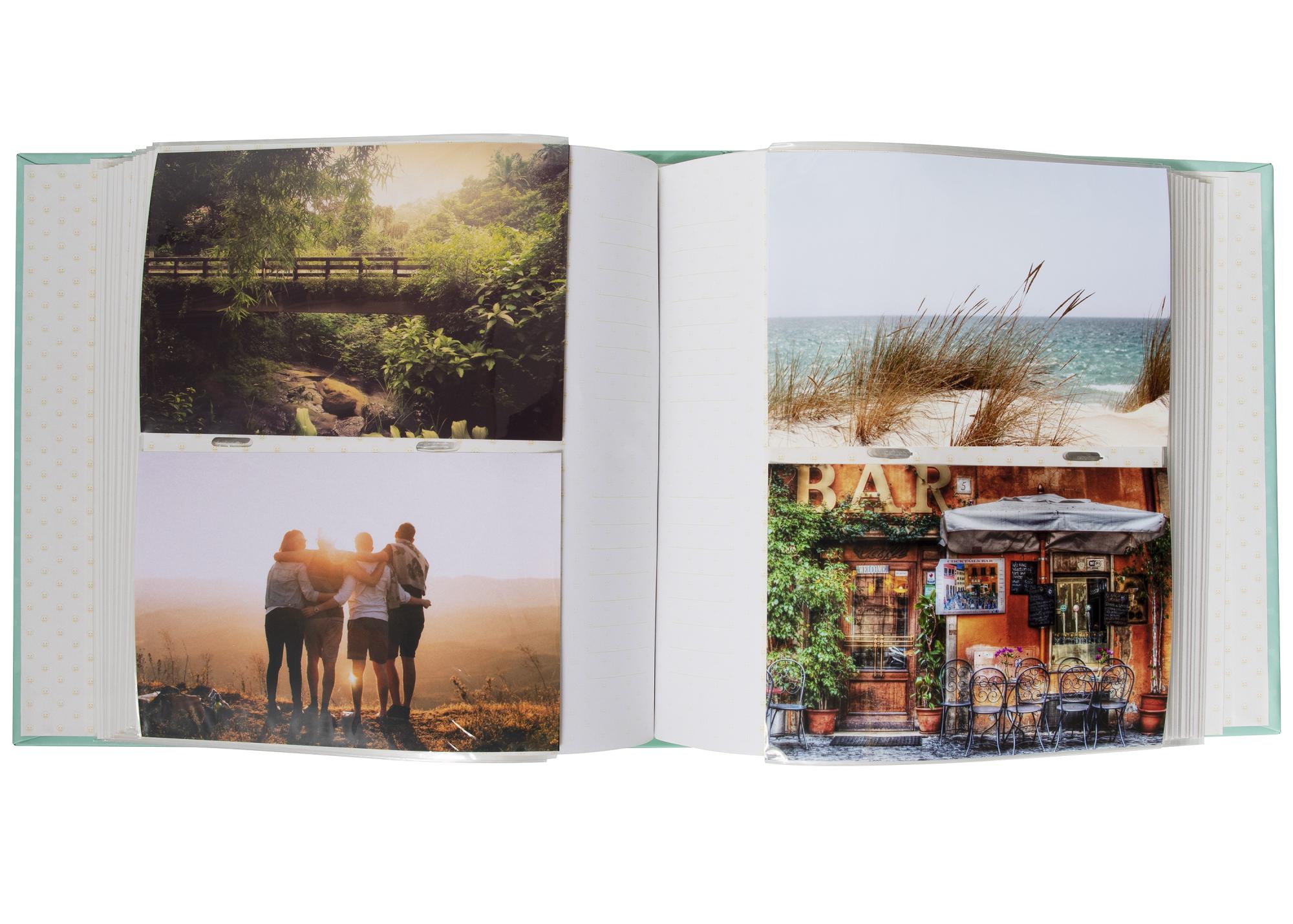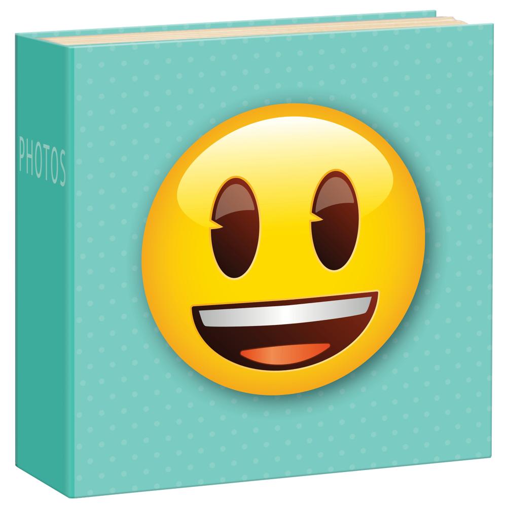 Samla alla dina fina kompisbilder i ett sött fotoalbum med emojimotiv! Det här albumet har fotofickor som du enkelt sätter in 200 av dina bilder i. Pärmen är turkos med ljusa prickar, en glad emoji på framsidan och texten "Photos" tryckt i vitt på pärmryggen.