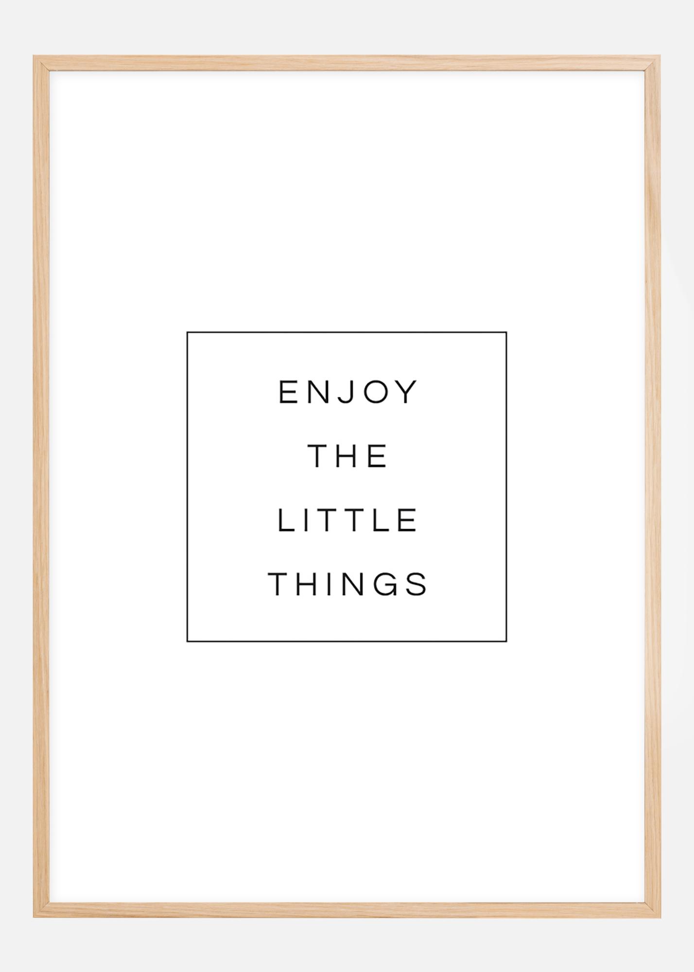 En motiverande poster som berättar hur du ska komma igång med din dag. Den här enkla vita postern berättar att du ska njuta av de små sakerna, ”Enjoy the Little Things”, en bra bekräftelse för varje dag. Ge dig själv en boost varje morgon när du dricker ditt te framför detta tryck.