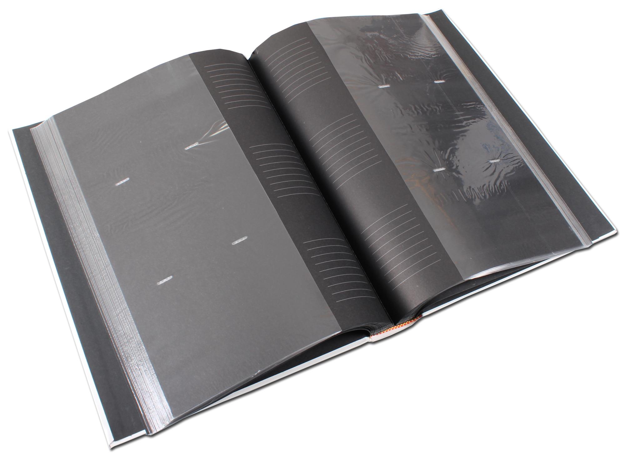 Under trista dagar kan du alltid plocka fram dina gamla minnen och muntra upp dig själv. Här har vi ett tjusigt och stilrent fotoalbum som rymmer hela 300 av dina värdefulla foton! Albumet går helt i vitt och det är tillverkat av konstläder. Inuti finns svarta, syrafria sidor med transparenta plastfickor. Under varje plastficka finns ett skrivfält som du kan skriva något roligt på. Använd gärna en stark metallicpenna för att försäkra dig om att texten syns mot den svarta bakgrunden.
