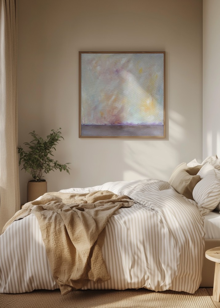 Denna poster fångar ögat med sina mjuka och drömska färger, vilket gör den till ett perfekt tillskott i alla moderna hem. Motivet består av en himmelsliknande abstrakt målning, där olika nyanser flyter ihop och skapar en harmonisk känsla. Perfekt för dig som letar efter en print som adderar en känsla av stillhet och elegans till ditt rum.