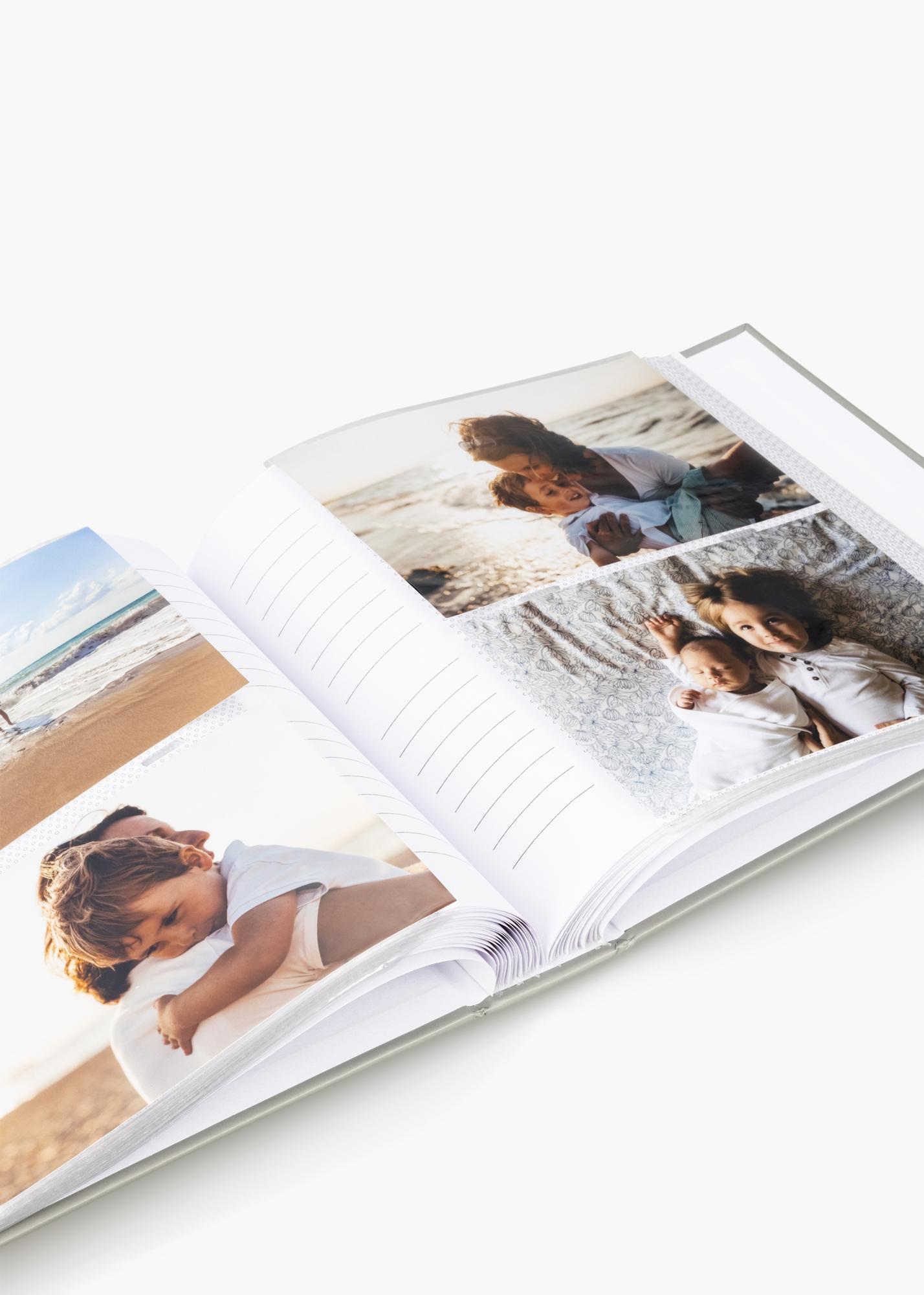 Albumets pärmar är klädda i en tidlös grå färg som passar in i alla hem och inredningsstilar. De vita sidorna ger en ren och fräsch bakgrund för dina fotografier, medan den liggande bildorienteringen framhäver varje bilds unika charm. För varje foto finns det dessutom ett passande skrivfält där du kan anteckna minnesvärda detaljer eller datum, vilket gör albumet både personligt och informativt.