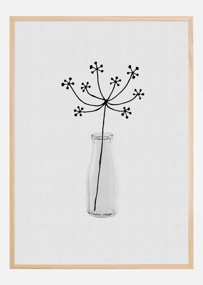 Denna charmiga och konstnärliga poster framställer enkelheten och skönheten i en blomma i silhuett. Med sitt minimalistiska tilltal fångar motivet essensen av en blommande växt med slående svarta konturer som vilar i en genomskinlig vas, vilket skapar en stilren och lugnande bild. Detta konstverk är idealiskt för att tillföra en touch av naturinspirerad estetik till en modern inredningsstil.