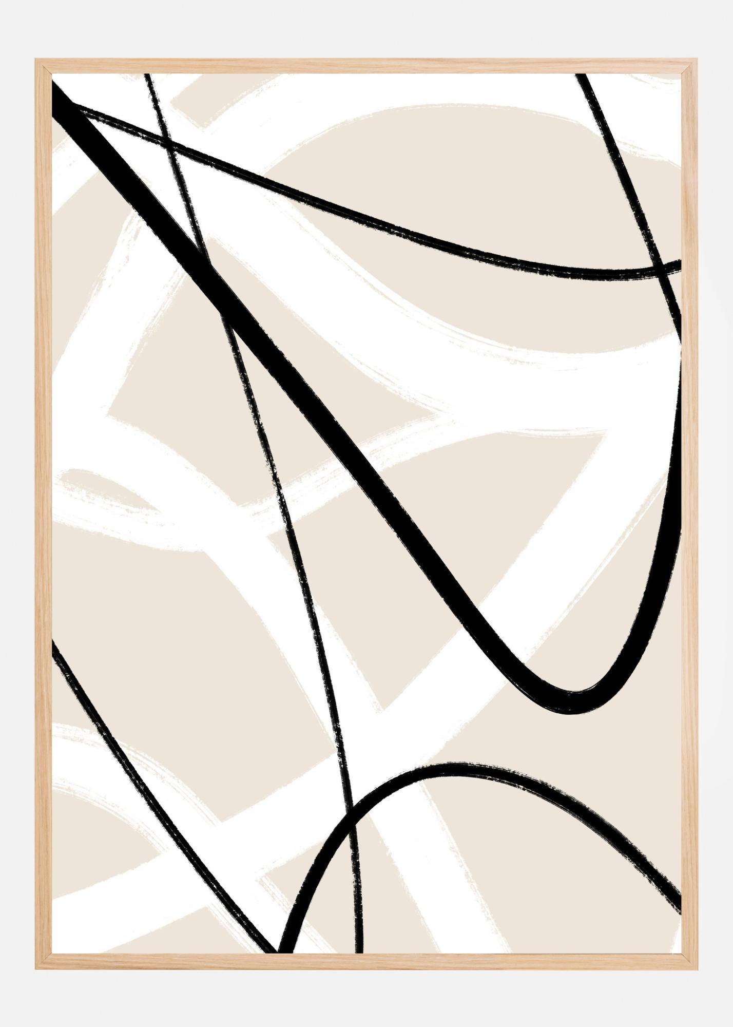 Denna stilrena poster erbjuder en modern känsla med sina eleganta linjer och minimalistiska design. De svepande svarta linjerna skapar en dynamisk kontrast mot den mjuka beige bakgrunden, vilket ger en tidlös look som enkelt kan anpassas i olika inredningar. Perfekt som affisch i vardagsrummet eller som print i kontorsutrymmet ger detta motiv ett subtilt men distinkt uttryck.