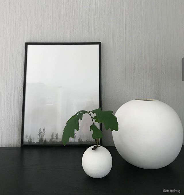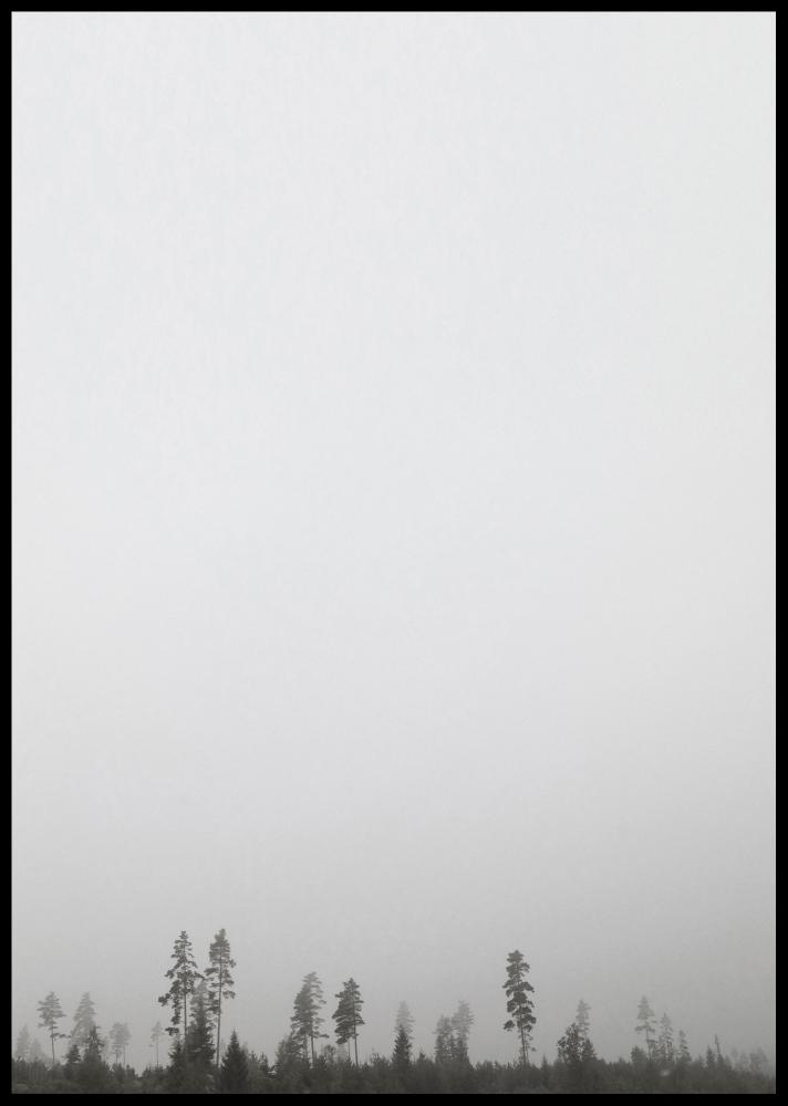 Fototryck som leker med perspektiven, framtaget i samarbete med fotografen Ragnhild Furulund. Den glesa skogen mot den höga gåmulna himlen ger ett spännande motiv trots sin enkelhet. Affischen gör sig fint i hem inredda i nordisk stil eller varför inte i den moderna fjällstugan. Rama in bilden med en enkel träfärgad, svart eller vit ram för att framhäva motivet. Tavlan passar att hänga med annan fotokonst på en tavelvägg med naturtema.