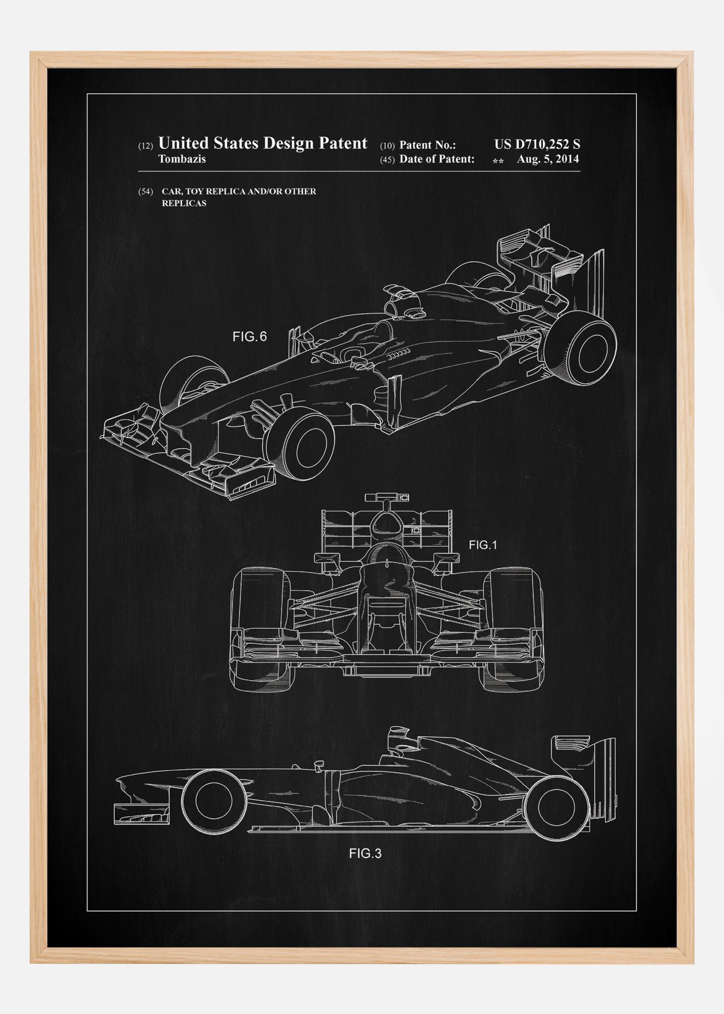 Denna patentposter framhäver den eleganta och komplexa designen av en Formel 1 bil, enligt US Design Patent US D710,252 S, daterat 5 augusti 2014. Med sina distinkta linjer och aerodynamiska former, fångas bilens utformning ur flera perspektiv, vilket ger en heltäckande bild av dess ikoniska och tekniskt avancerade karaktär. Denna design är fundamental för den höga prestanda och hastighet som förknippas med formelracing.