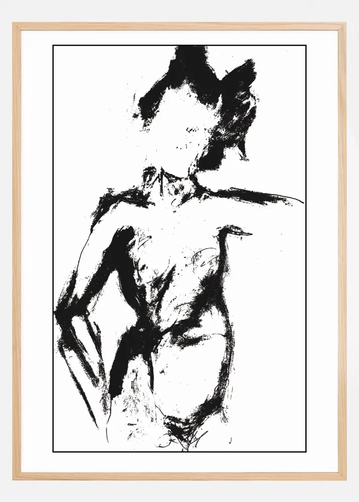 En svartvit poster med en figurteckning. De tjocka djärva svarta penselsträckorna har skapat den här kvinnan i nästan chiaroscuro-stil. Titta på den här en stund och du förväntar dig nästan att hon ska röra sig.