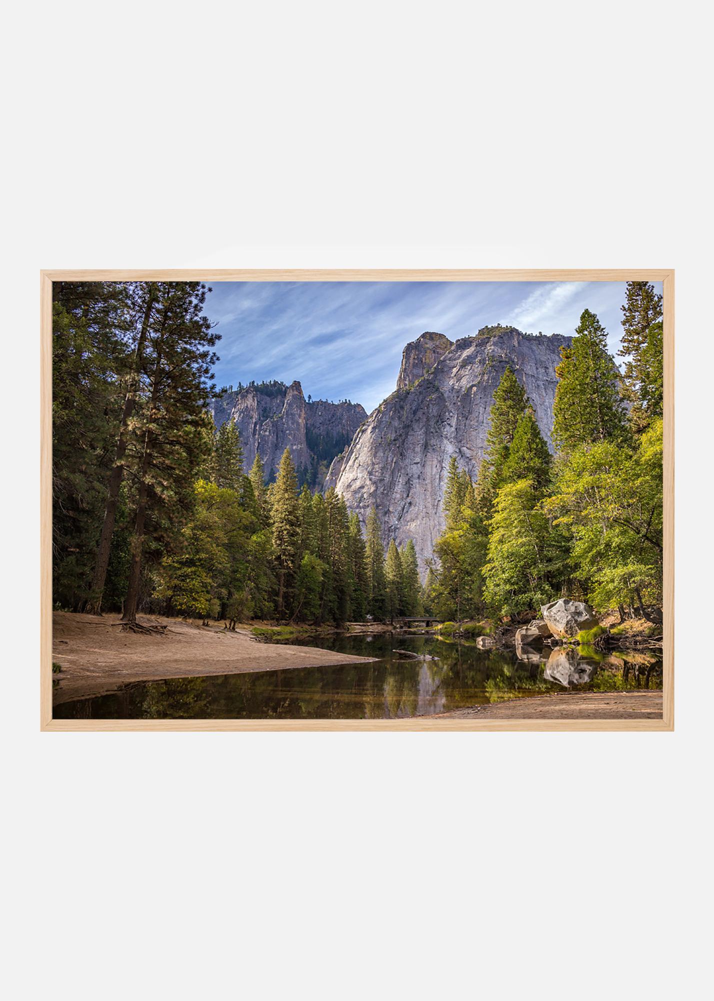 Print med höga klippor och en stilla skog som speglar sig i en rofylld vattenyta. En talande tystnad som skapar ett fridfullt landskap. Tillsammans med en ram i naturmaterial passar tavlan in i alla typer av inredningar och färgscheman. Häng fotografiet tillsammans med andra naturbilder eller välj en större storlek för att få effekt som ensam tavla.