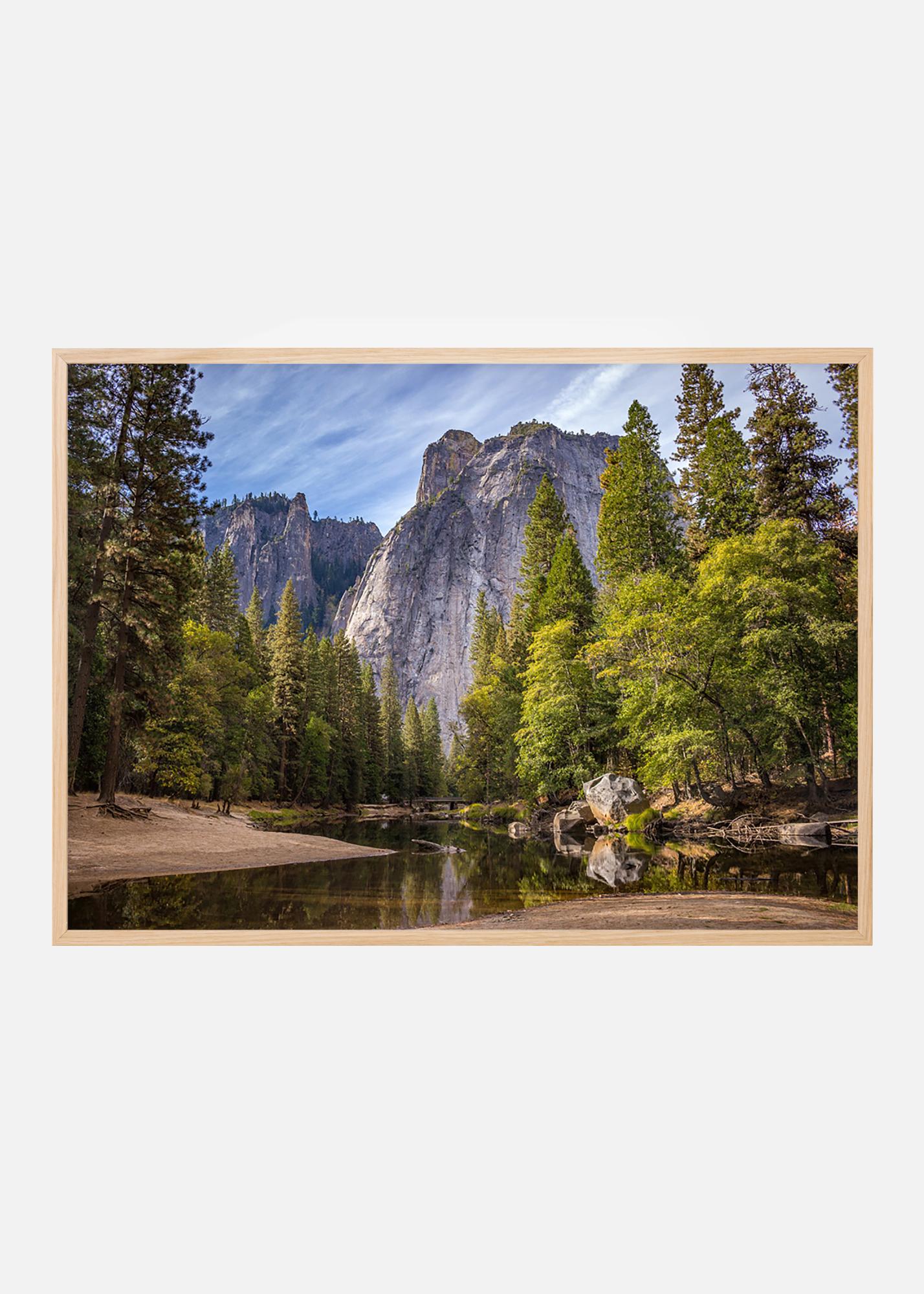 Print med höga klippor och en stilla skog som speglar sig i en rofylld vattenyta. En talande tystnad som skapar ett fridfullt landskap. Tillsammans med en ram i naturmaterial passar tavlan in i alla typer av inredningar och färgscheman. Häng fotografiet tillsammans med andra naturbilder eller välj en större storlek för att få effekt som ensam tavla.