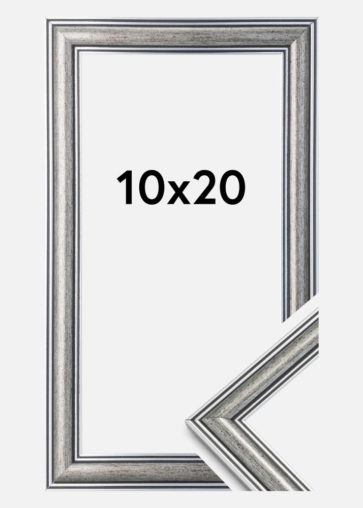 Frigg är en silverram med svarta linjer och svartspräckliga inslag. Passar utmärkt när du söker en bred traditionell silverram som passar till många typer av bilder och miljöer.