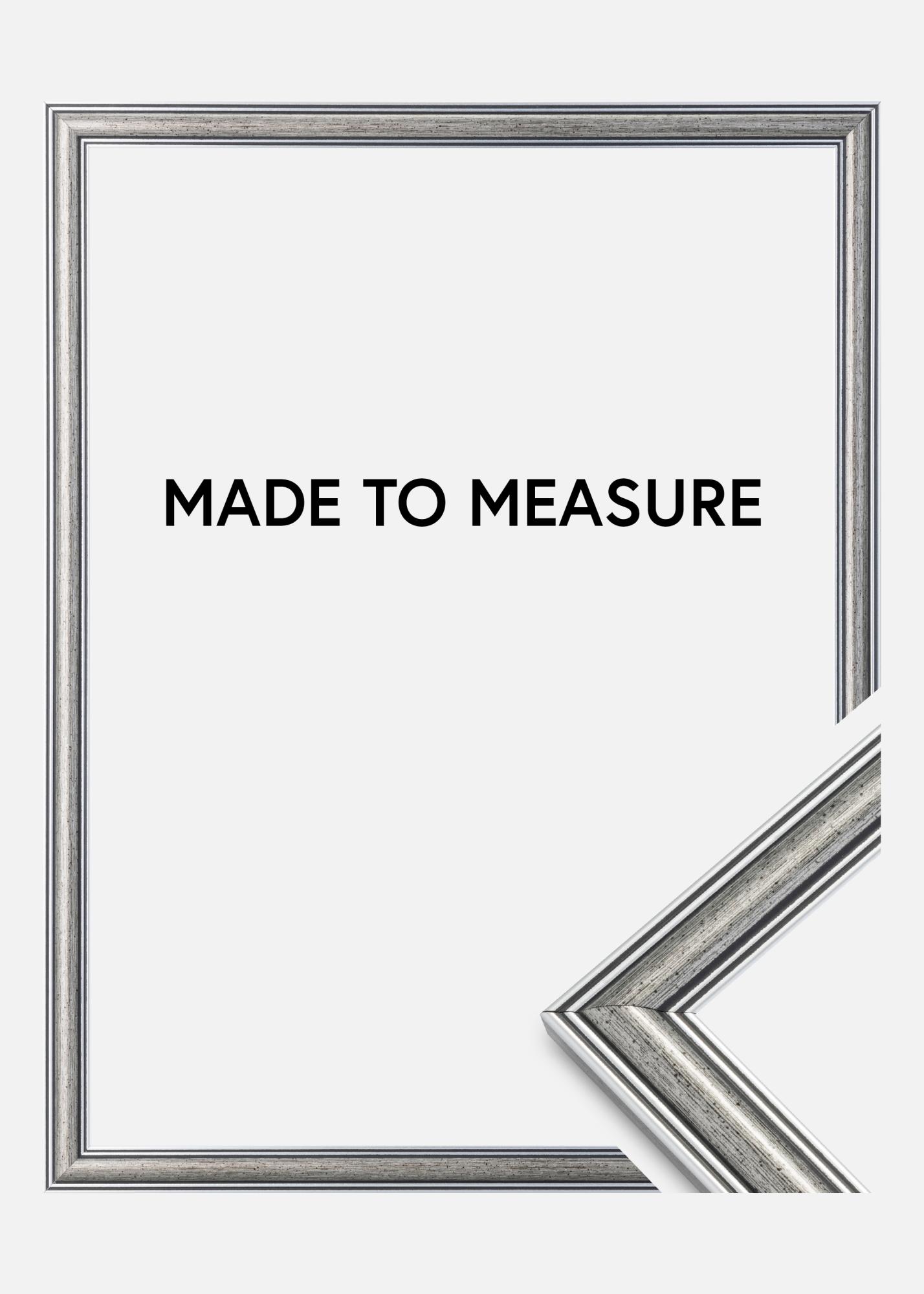 Frigg är en silverram med svarta linjer och svartspräckliga inslag. Passar utmärkt när du söker en bred traditionell silverram som passar till många typer av bilder och miljöer.
