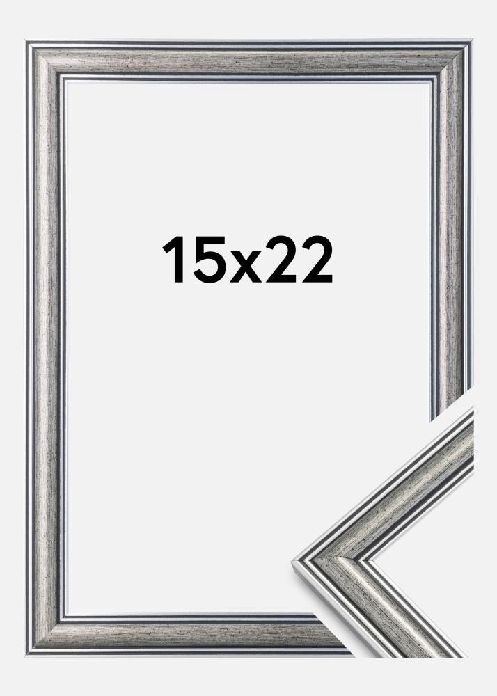 Frigg är en silverram med svarta linjer och svartspräckliga inslag. Passar utmärkt när du söker en bred traditionell silverram som passar till många typer av bilder och miljöer.