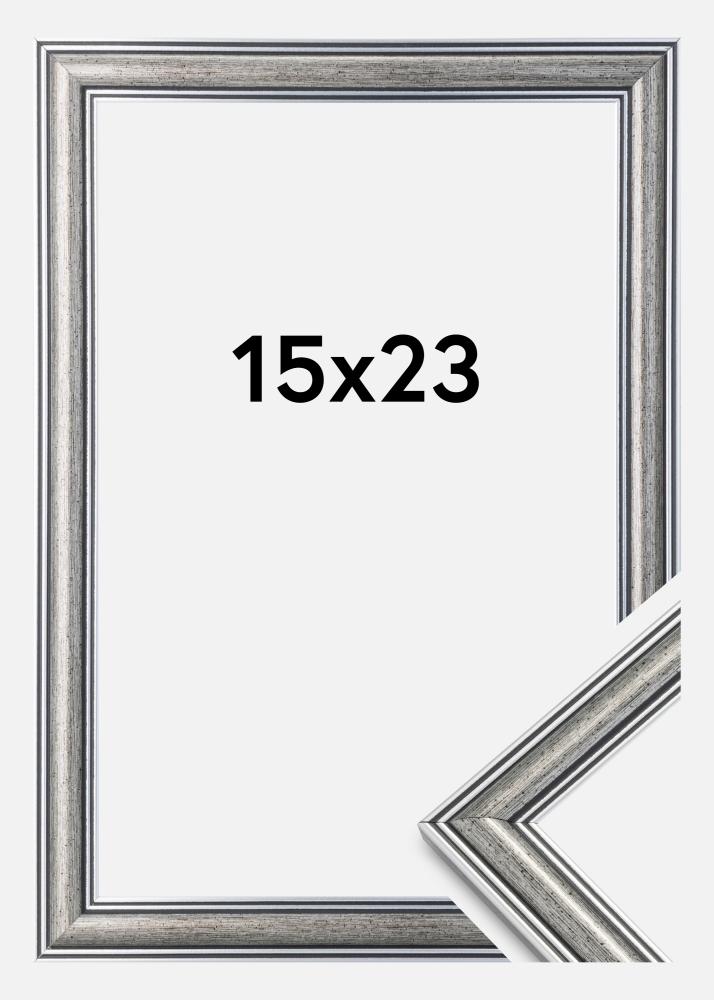 Frigg är en silverram med svarta linjer och svartspräckliga inslag. Passar utmärkt när du söker en bred traditionell silverram som passar till många typer av bilder och miljöer.