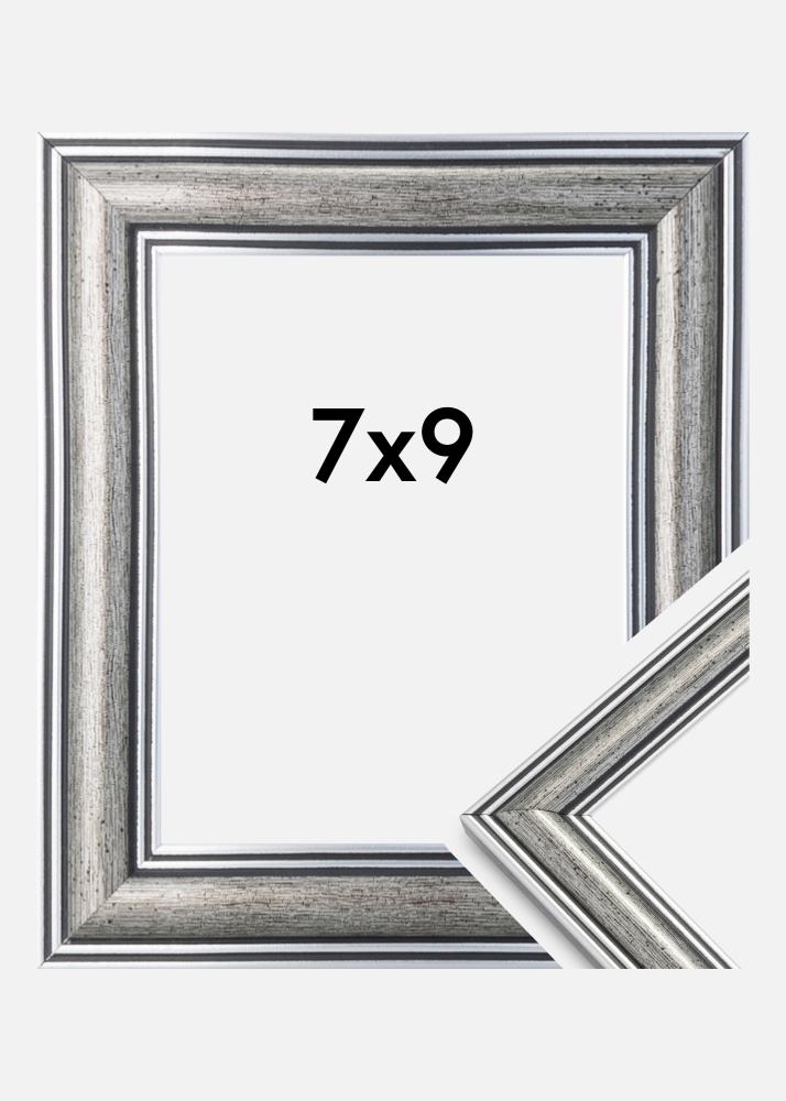 Frigg är en silverram med svarta linjer och svartspräckliga inslag. Passar utmärkt när du söker en bred traditionell silverram som passar till många typer av bilder och miljöer.