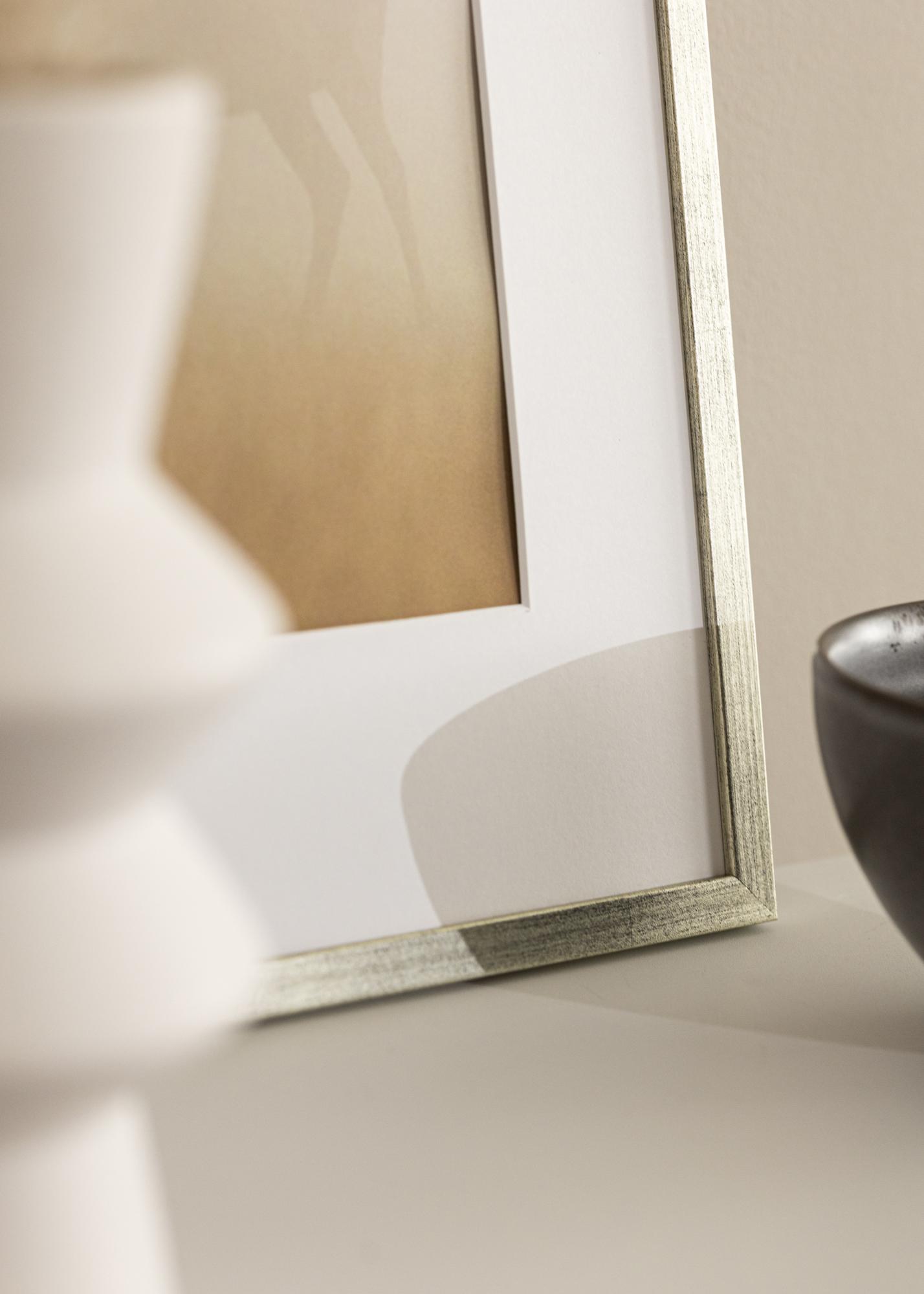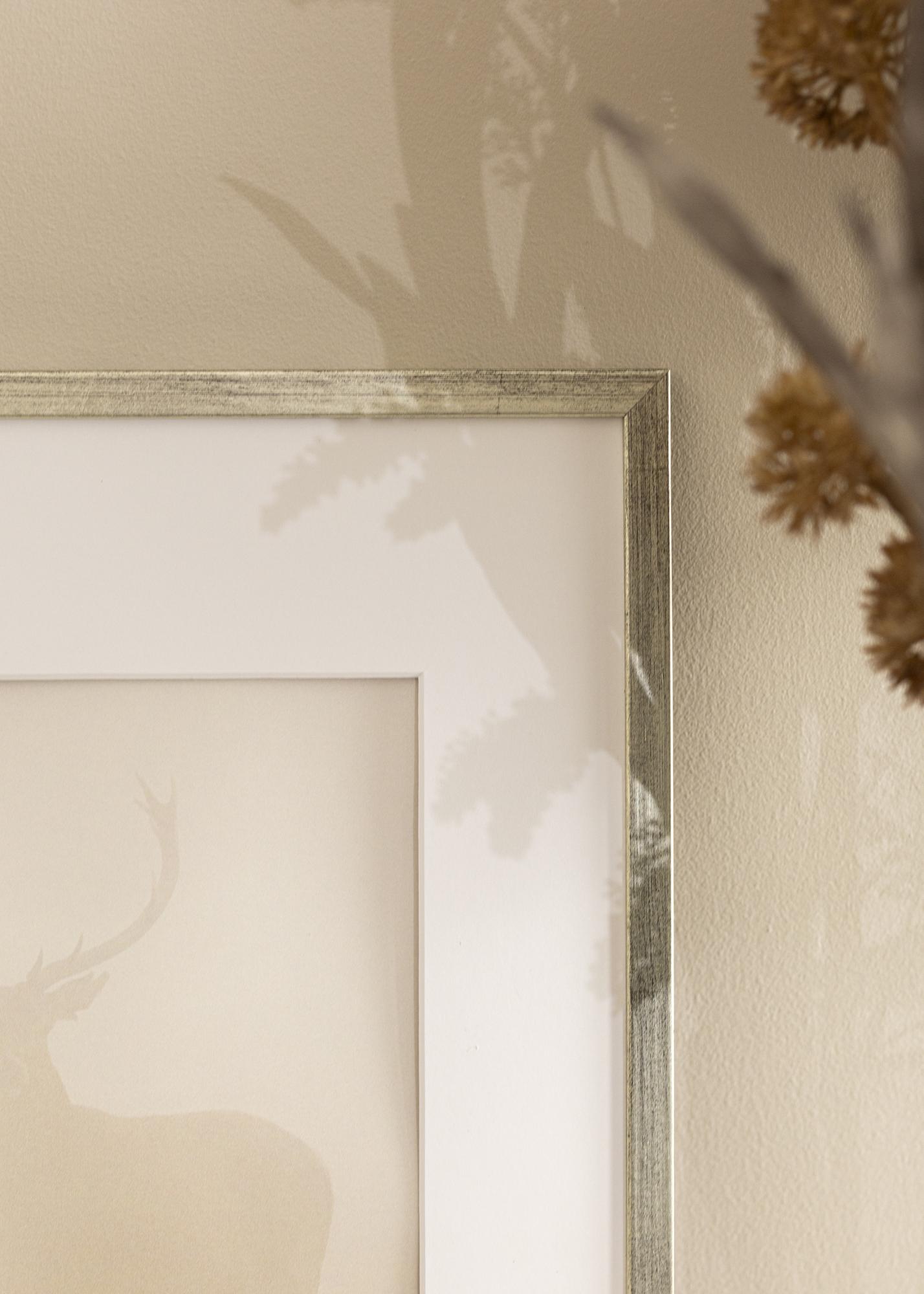 Stilig träram med en rak profil som har en härlig vintagekänsla och nött silverfärgad yta med svartspräckliga inslag. Med sin mjuka silverfärgade profil är Galant Silver en ram som passar till nästan alla typer av bilder.