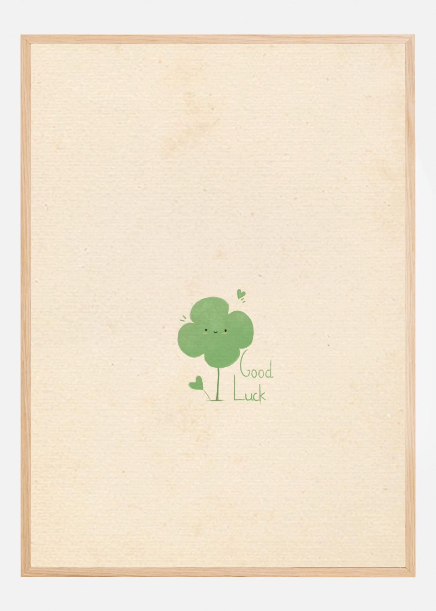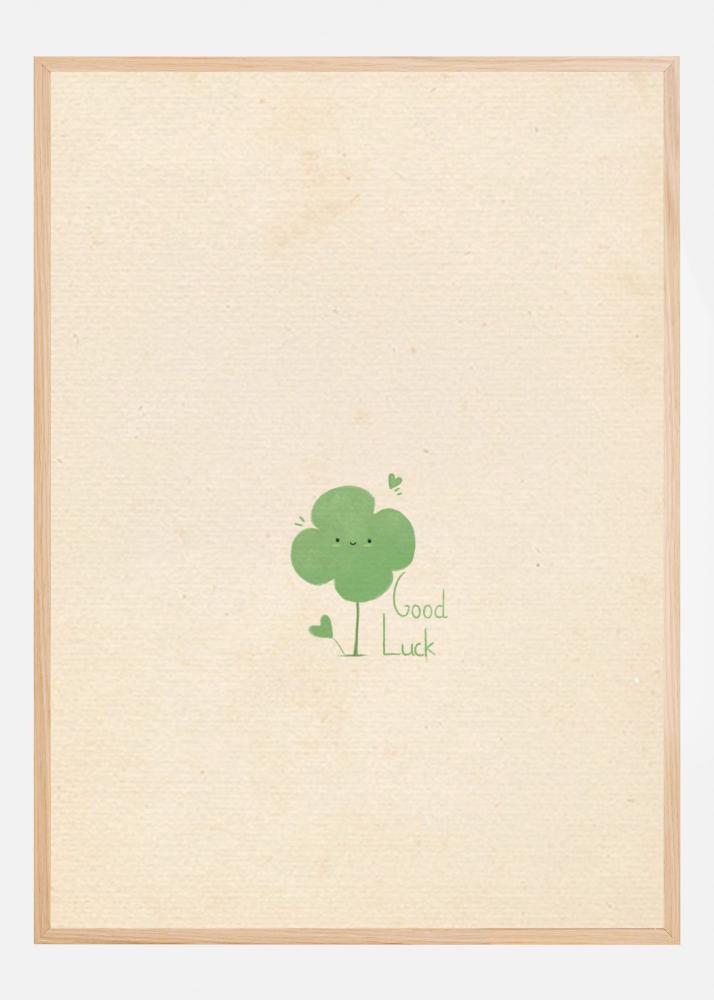 Upplev turen och positiviteten med denna charmiga poster som framhäver en minimalistisk illustration av ett lyckoklöver med ett leende ansikte. Designen är avskalad och modern, och bjuder in betraktaren till ett lugnt och hoppfullt tillstånd. Texten "Good Luck" som är fint placerad bredvid klövern ger en uppmuntrande känsla och gör denna affisch till en perfekt present eller en inspirerande tillägg till din egen vägg.