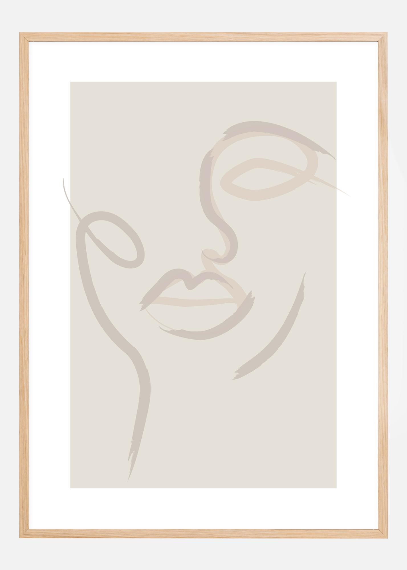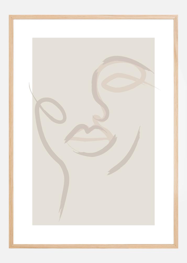 En vacker porträttposter gjort med enkla penseldrag. De enkla linjerna formar ett kvinnoansikte mot en beige bakgrund. Det här är enkelhet i sitt bästa. Med hjälp av dessa tre enkla penseldrag kanske du frågar dig själv vem den här vackra kvinnan är?