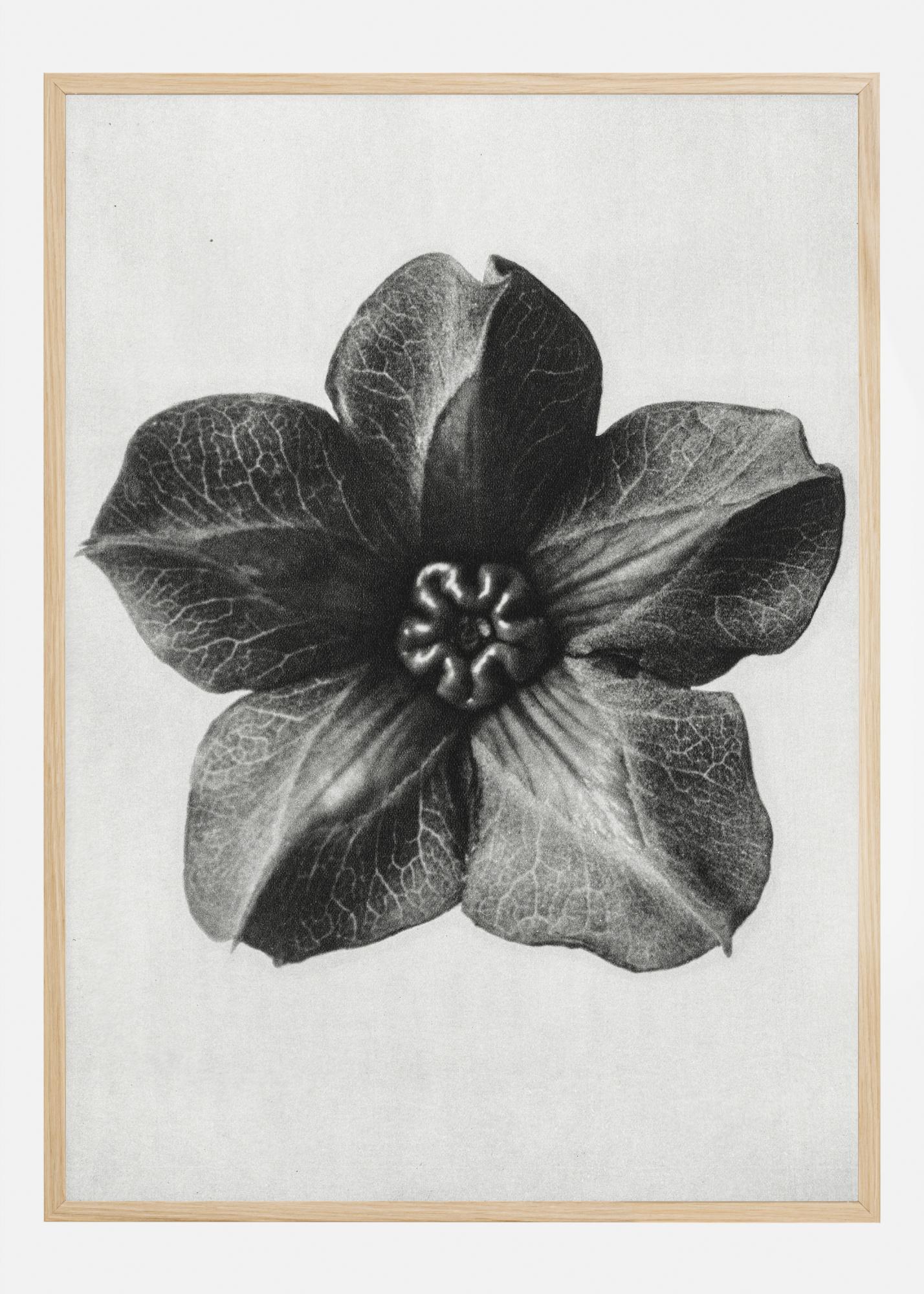 Ett vackert botaniskt tryck med en ensam växt i full blom. Ett enkelt men vackert tryck målat i svartvitt och föreställer en fembladig blomma. Pryd din vägg med en botanisk poster för att skapa en naturlig känsla i ditt hem.