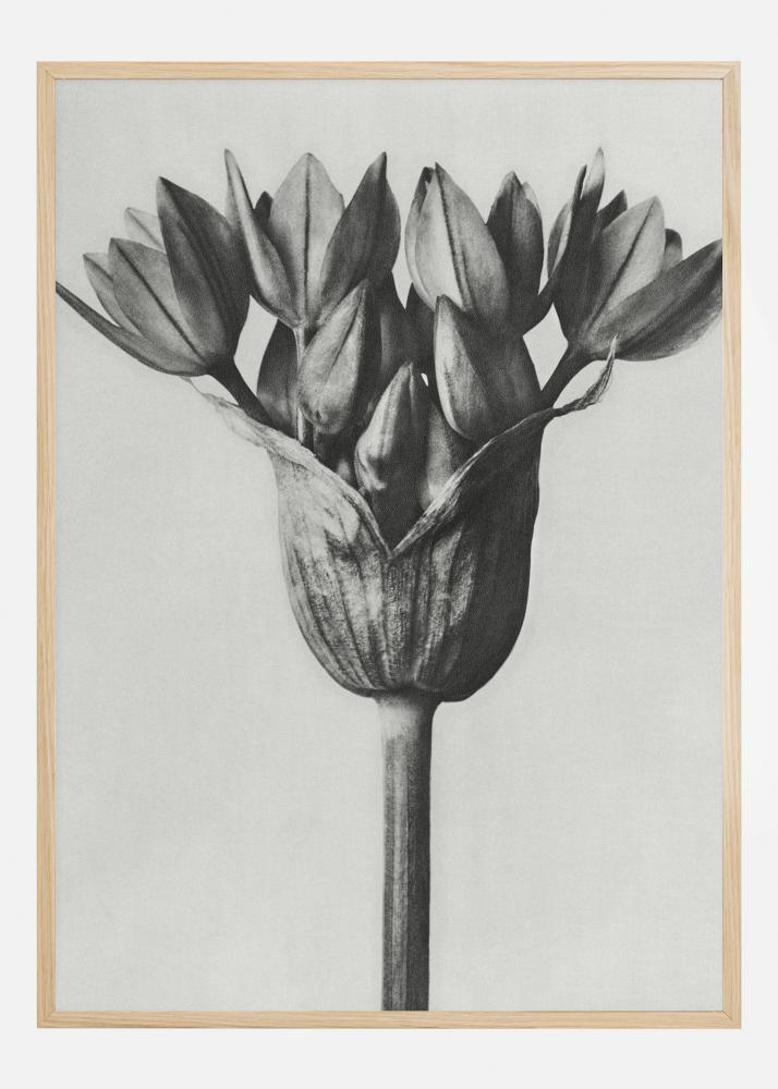 En vacker svartvit poster av en blomma från vilken många mindre blommor springer fram. Den skildrar en symbol för lycka med sin elegans och enkelhet. Ljus- och skuggeffekterna skapar ett vackert tryck mot en enkel grå bakgrund. Det gör det här till ett lämpligt tryck i en rymlig miljö som exempelvis vardagsrummet eller sovrummet.