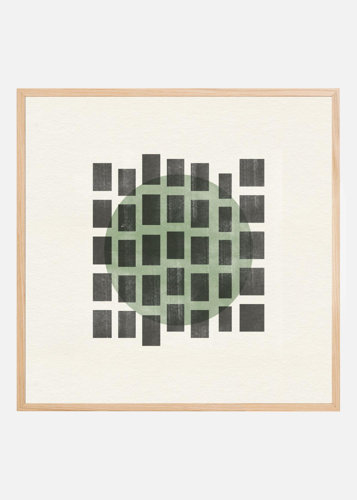 Denna stilrena poster fångar intresset med sitt unika geometriska motiv. En harmonisk kombination av en grön oval och svarta rektanglar skapar en modern känsla som passar perfekt in i både minimalistiska och livfulla inredningar. Motivet erbjuder en känsla av rörelse och balans, vilket gör det till ett intressant tillskott till ditt hem eller kontor.