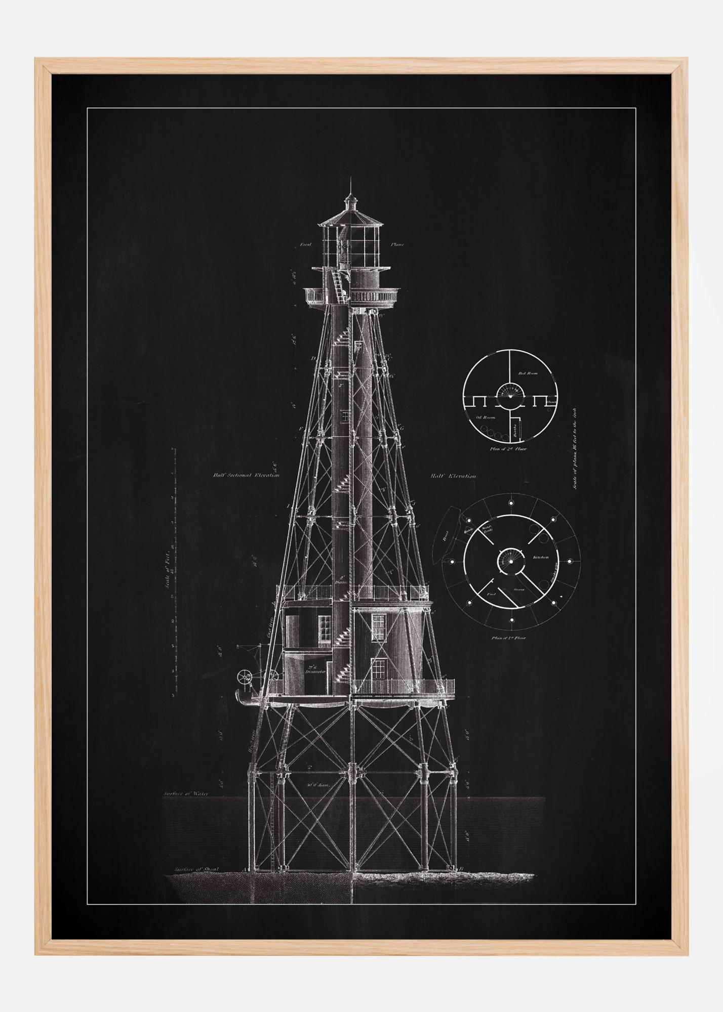 Har du en förkärlek för inredningskomponenter som tillför historia har vi här den perfekta affischen! Affischen för tankarna till en svart griffeltavla med en noggrant utförd arkitektritning på. Ritningen föreställer den vackra järnfyren Ship Shoal Light som tornar upp sig vid Louisianas kust. Fyren byggdes och togs i bruk 1859 och den har överlevt många orkaner, men med tiden har den börjat luta. Omkring 1866 upptäcktes att fyrvaktarna blev sjuka och efter en utredning hittade man giftig färg i fyrens vattentank. 1965 lät man lampan slockna för alltid men fyren står fortfarande kvar som ett fascinerande minnesmärke.