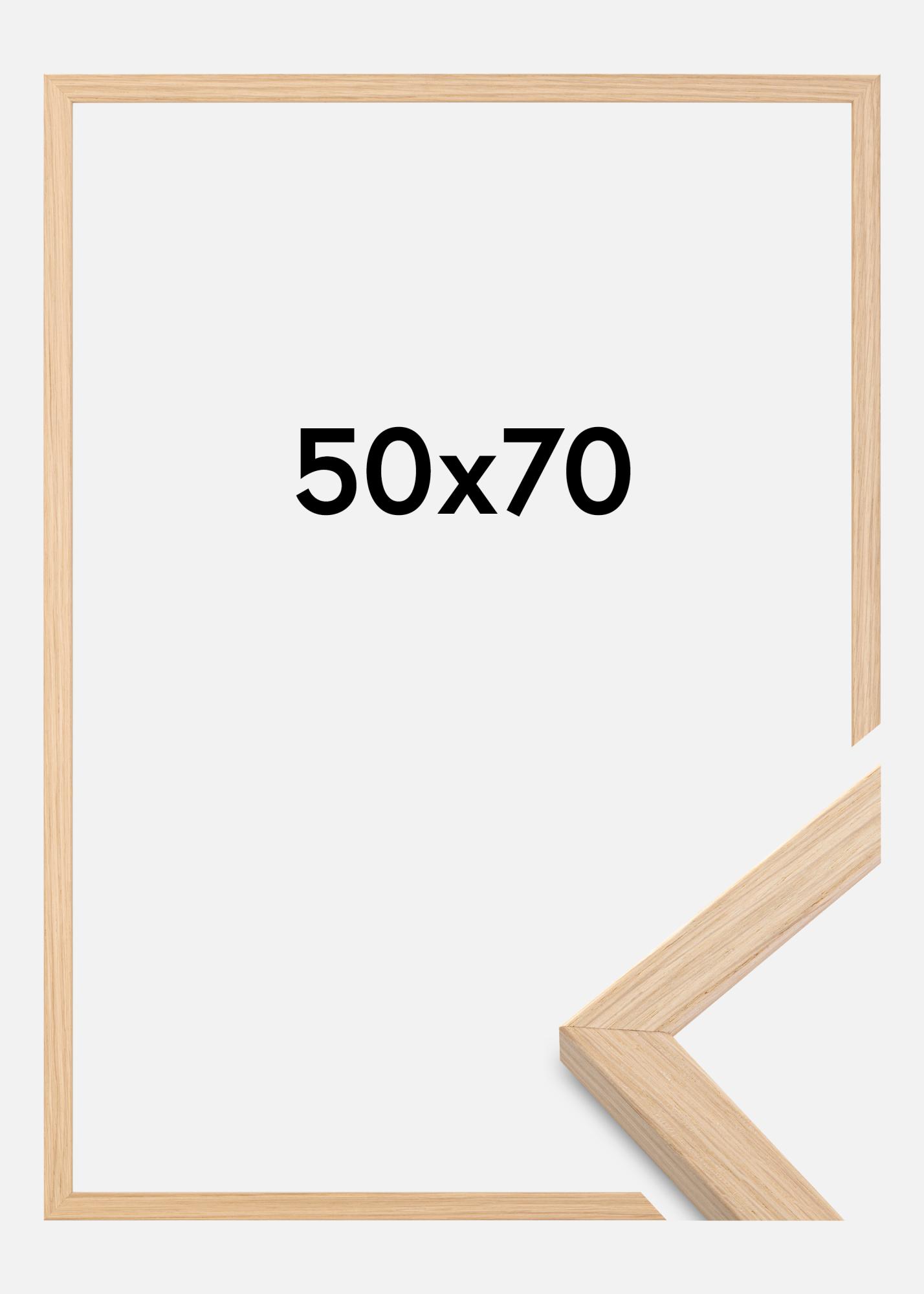 Grimsåker Ram Ek 22A 50x70 cm har innermåtten 50x70 cm medan listen mäter 1,7x2,25 cm.